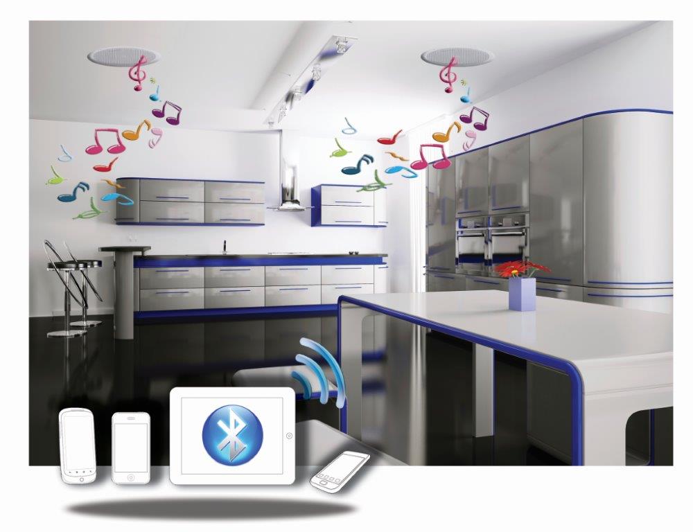 Het Bluetooth Music Center maakt muziek luisteren makkelijk, overal! Het combineert je huidige mobiele apparatuur met een krachtige digitale versterker die toch eenvoudig te verbergen is. Verbaas vrienden (en jezelf) met professioneel geluid. Je eigen smartphone of tablet is de bron voor dit muzieksysteem. Het vermogen van deze bluetooth-versterker is met 35 of zelfs 50 Watt genoeg om ook een grote keuken met prima geluid te vullen. Het volume regel je eenvoudig via de volumetoetsjes van je smartphone. Zo geniet je tijdens het koken van je favoriete muziek.