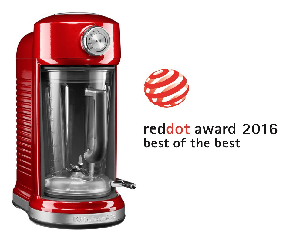 De vorig jaar gelanceerde innovatieve, magnetisch aangedreven blender van KitchenAid heeft de Red Dot ‘Best of the Best’ Award gewonnen. De Red Dot jury kende uit meer dan 5.000 inzendingen de felbegeerde onderscheiding toe aan de KitchenAid Magnetic Drive Blender. De jury roemde het baanbrekende productontwerp. De Red Dot Award is een van de meest prestigieuze, internationale designprijzen. Ontwerpers en fabrikanten uit 57 landen dingen jaarlijks mee naar een erkenning voor innovatie, kwaliteit, functionaliteit en milieuvriendelijkheid.