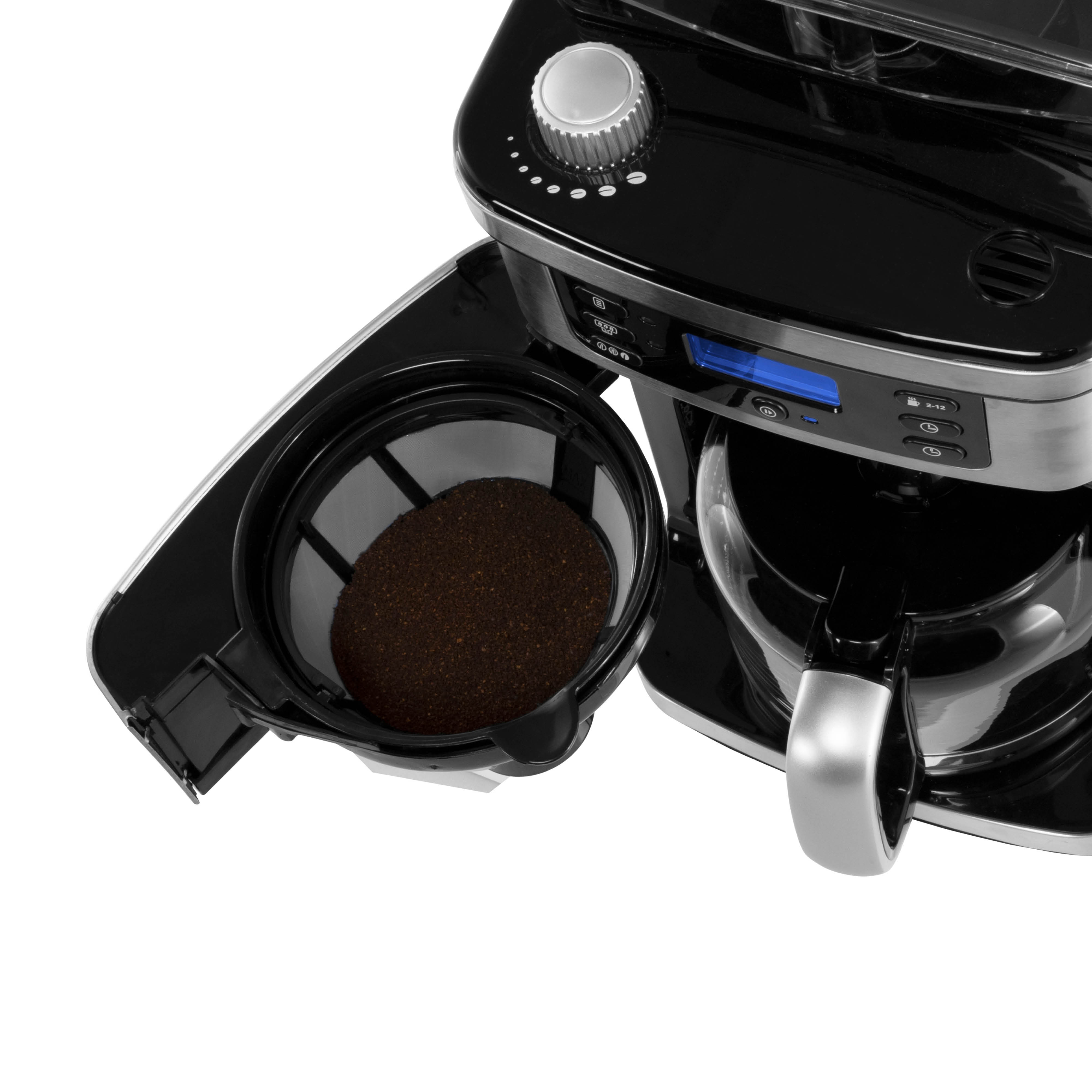 Je kunt zelf kiezen of je koffie wilt zetten van verse koffiebonen of met filterkoffie. Het apparaat heeft een handige geïntegreerde koffiemolen. Je kunt zelf instellen hoe grof of fijn je de koffiebonen gemalen wilt hebben. Het waterreservoir heeft een inhoud van 1,5 liter. Dat is genoeg voor ongeveer 12 kopjes koffie. En met de timer is de koffie ook altijd klaar op het moment dat jij dat wilt. Het Inventum KZ915GD koffiezetapparaat houdt je koffie 35 minuten warm en schakelt daarna automatisch uit.