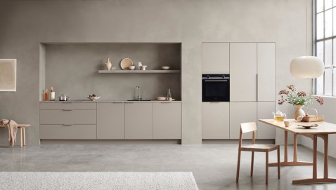 Het klassieke ontwerp Mano is hét visitekaartje van Kvik. Niet voor niks gaat deze keuken al twintig jaar mee. Eerder was de Mano al beschikbaar in klassiek wit, donkergrijs en donker hout. Met de introductie van de fluweelzachte kleur arizona beige, wordt de keuken vanaf september dit jaar in vier varianten aangeboden. Claus Johnsen, hoofd design bij Kvik: “Combineer de keuken met bijpassende accessoires die het design afmaken en een eigen karakter geven. Kies bijvoorbeeld voor de Mano arizona beige in combinatie met een dun, verfijnde eikenhouten werkblad. Zo creëer je een moderne en toch warme uitstraling passend in elk huishouden.”