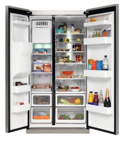 De zuinige ledverlichting in deze side-by-side koel-vriescombinatie zorgt naast een goed zicht op de levensmiddelen ook voor extra energiebesparing. De No-Frost functie voorkomt ijsafzetting in de vriezer, waardoor ontdooien overbodig is. Dit is niet alleen gemakkelijker, maar het bespaart ook nog eens stroom.
