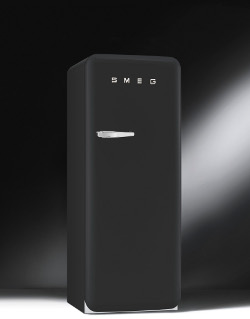 Een koelkast in urban stijl. De fascinerende Jaren ‘50 collectie van Smeg is uitgebreid met een nieuwe koelkast in matzwarte uitvoering: de FAB28RBV Black Velvet.