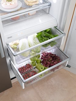 Naast het bijzondere uiterlijk van de nieuwe koel- en diepvriesapparaten overtuigt MasterCool ook door een efficiënt energieverbruik, door zijn innovatieve bijzonderheden en optimale bewaaromstandigheden voor levensmiddelen. Laden met verschillende klimaatzones – onder de naam MasterFresh - houden de producten vers. Net als bij PerfectFresh is het mogelijk bederfelijke levensmiddelen tot wel drie keer langer vers te bewaren. Het verschil is echter dat bij MasterFresh de optimale omgevingstemperatuur en het vochtgehalte automatisch aan het gekozen levensmiddel worden aangepast. De comfortabele elektronische bediening van de nieuwe inbouwkoel- en diepvriesapparaten maakt voor elke lade eigen instellingen mogelijk. Die laden kunnen door de stevige telescoopgeleiders over de volle lengte worden uitgetrokken en gebruikt. In plaats van draagranden aan de zijkant bestaat het geleidingssysteem van de plateaus uit looprails die zich binnenin in de achterwand bevinden. De plateaus en opbergvakken kunnen door het simpelweg plaatsen en vastklikken bijna traploos in hoogte worden versteld en zijn afzonderlijk van elkaar in te stellen en uitneembaar. De binnenruimte en de deur kunnen op die manier flexibel worden gebruikt.