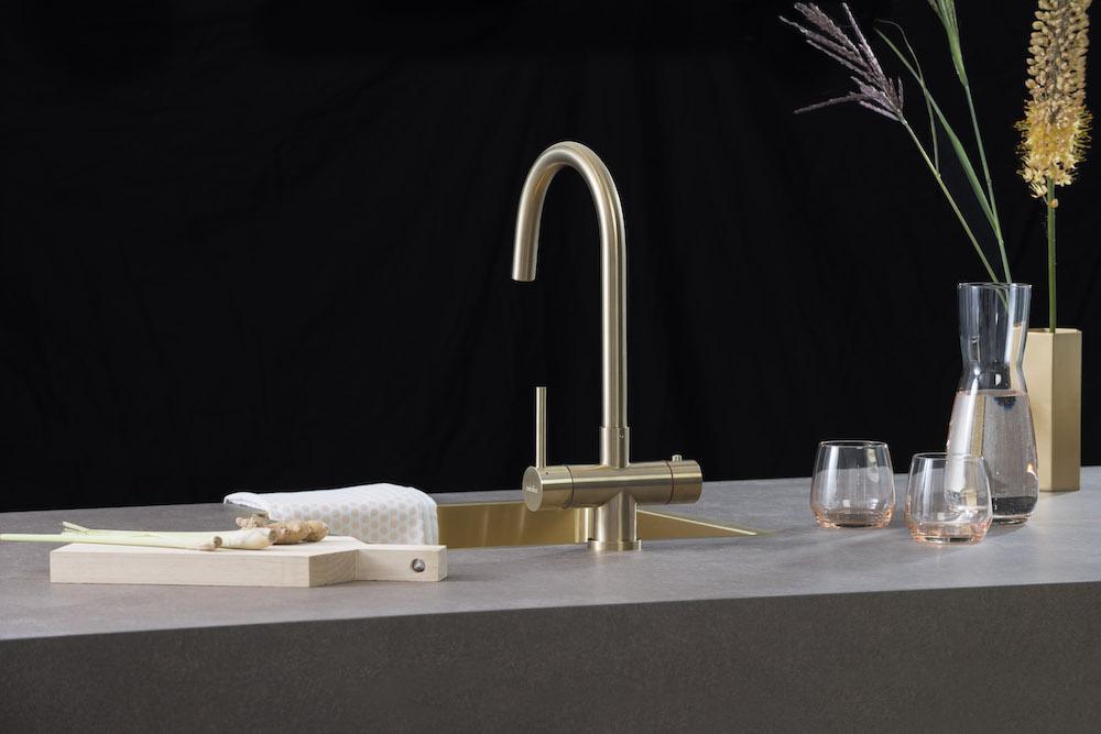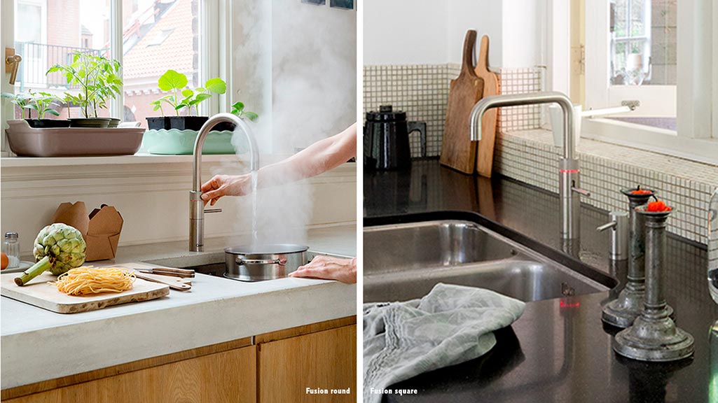 Fusion: de Fusion is ook een kokend-water-kraan en mengkraan in één. Deze bevat echter geen uittrekslang. Hij is verkrijgbaar in zowel een ronde als vierkante uitloop. Ook heb je keuze uit vier verschillende finishes, waaronder een matzwarte. Zowel de Fusion Round als Fusion Square zijn te koop vanaf €1.195.