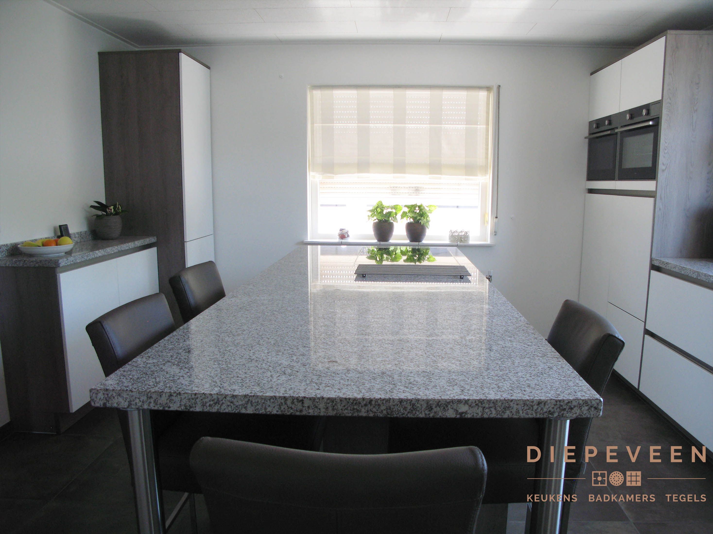 Naast het plaatsen van een keuken en badkamer hebben wij ook de kantoorruimte geplaast. Prachtige combinatie met hout!
