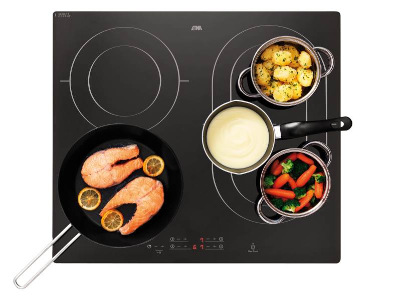 Flexibiliteit tijdens het koken is het belangrijkste kenmerk van de nieuwe Flex inductiekookplaat van ETNA. De kookplaat uit de Trendline heeft 4 kookzones waarvan 2 zones gekoppeld kunnen worden tot één grote zone. Hierdoor is er alle ruimte voor meerdere kleine pannen, maar kookliefhebbers hebben ook de vrijheid om met een grote vispan of braadslede aan de slag te gaan. De adviesprijs voor de inductiekookplaat bedraagt € 1.049,-.