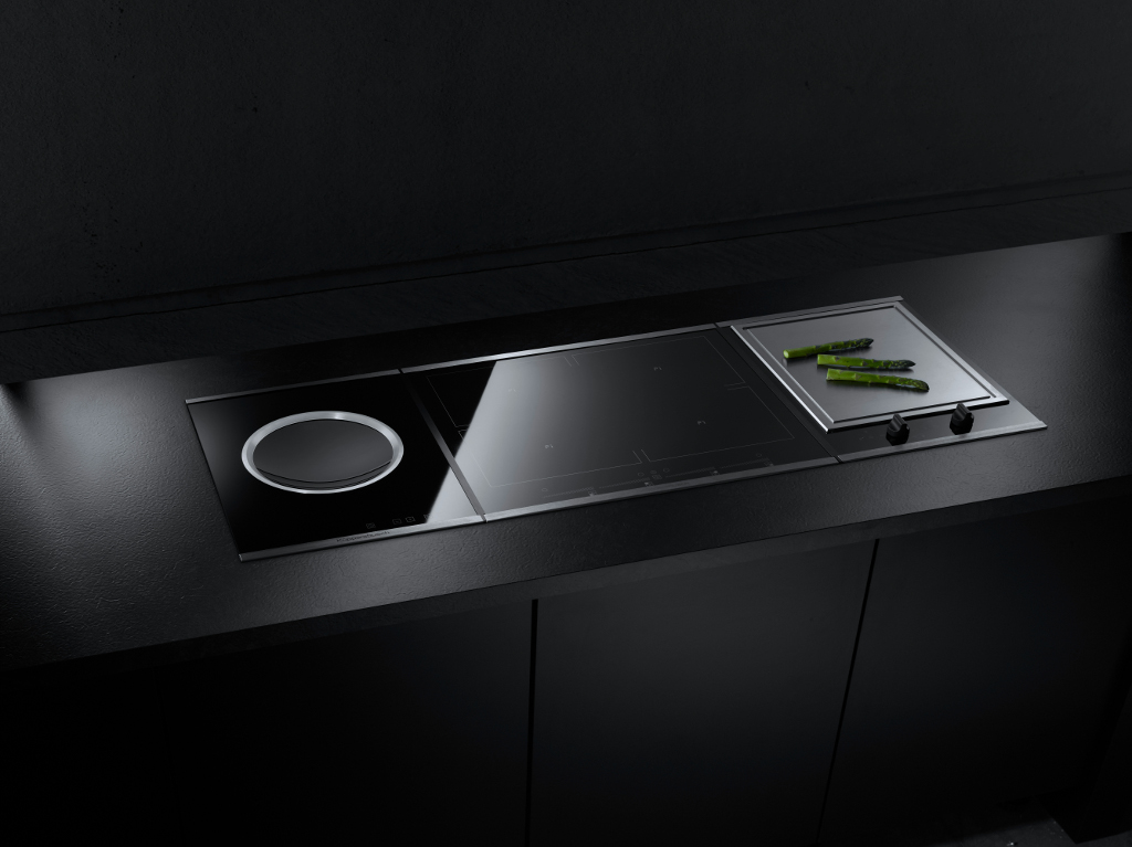 Alle kookplaten uit het Küppersbusch programma kunnen door middel van een RVS verbindingsstrip naadloos tot één unit worden gecombineerd.