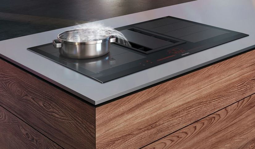 De revolutionaire Siemens inductionAir is een combinatie van twee geweldige apparaten: een flexInduction kookplaat en een geïntegreerde werkbladafzuiging.