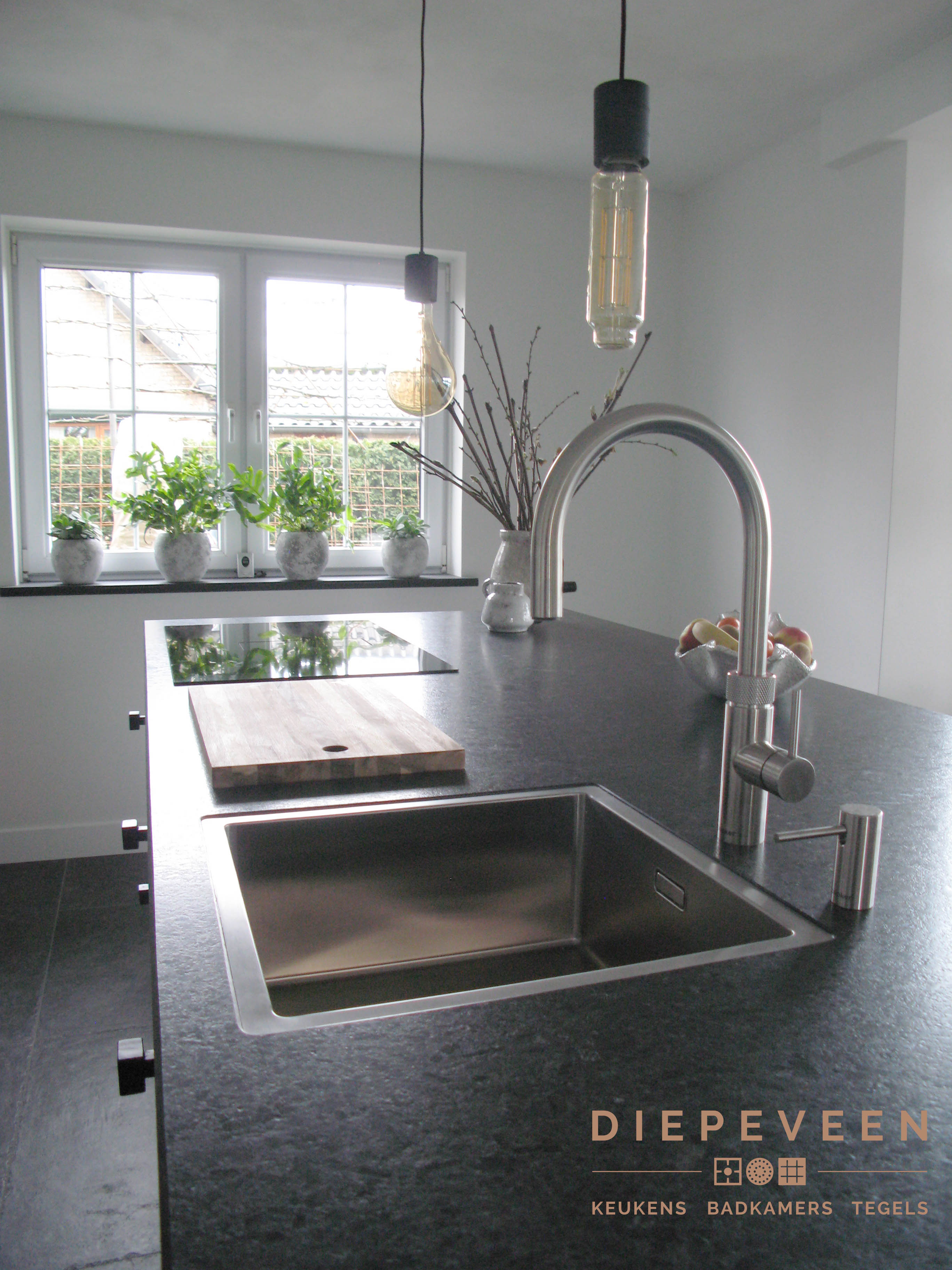 Deze tijdloze keuken is voorzien van alle moderne gemakken zoals een Quooker kraan, Novy kookplaat met afzuiging en een stoomoven.