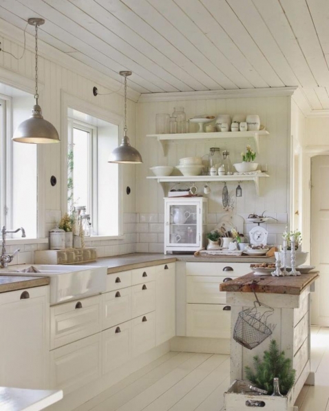 Deze prachtige witte landelijke keuken past helemaal in de stijl van het huis. Schitterend!
