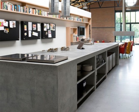 Modern landelijke keuken met beton werkblad en smeg apparatuur, verdere info www.diepeveen.nl