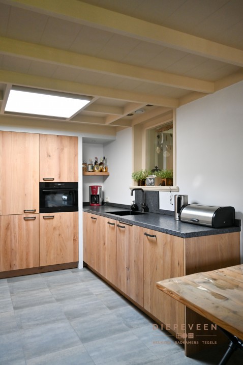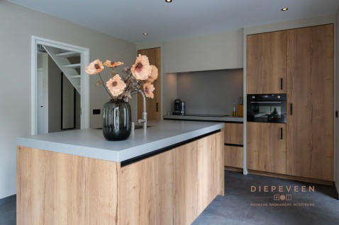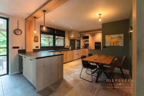 Deze robuuste, landelijke keuken vind je bij Diepeveen Keukens.