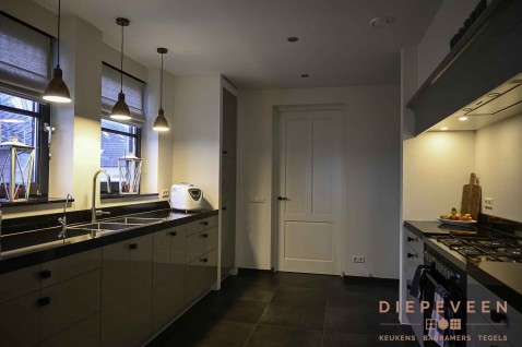 Een prachtige keuken in de kleur carbon met een stoer graniet blad erop!