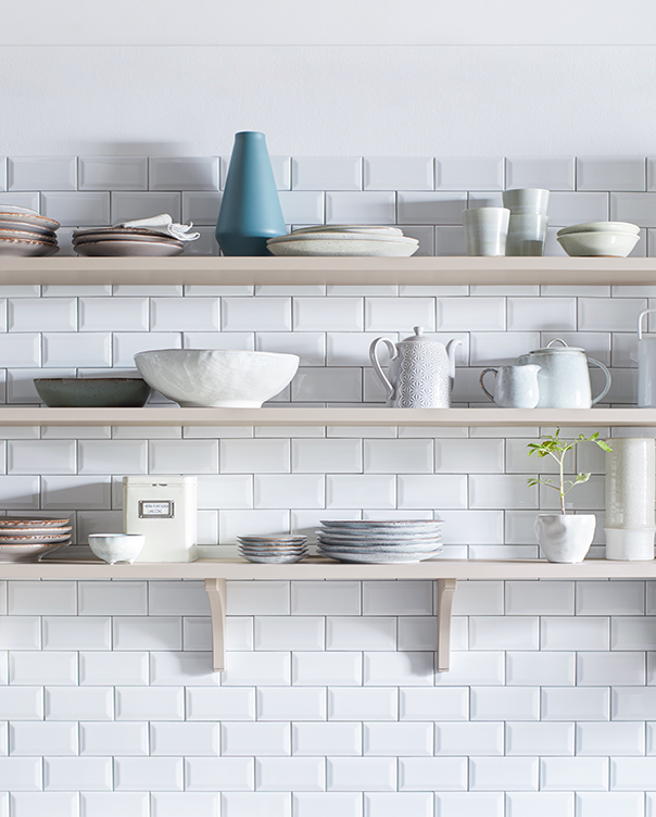 Het ontwerp van de keuken is open en luchtig. De lichte, natuurlijke kleuren en typisch landelijke elementen, zoals de rekken met gewelfde wandsteunen en het eiland met staand rek, creëren een ruime kamer met veel plaats voor ontplooiing.