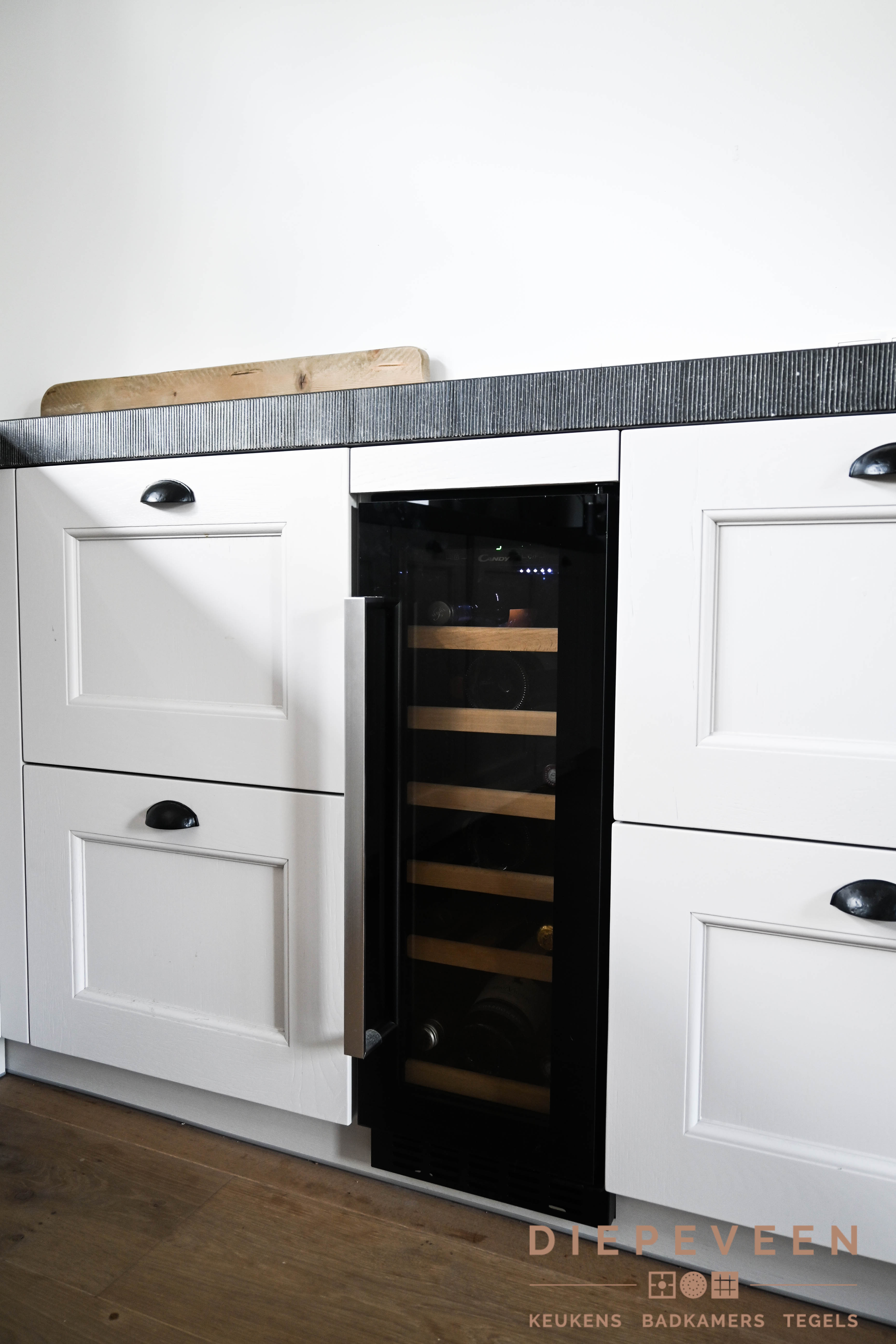 Bij deze landelijke keuken kan een fornuis natuurlijk niet missen! Om toch wel aan het praktische te denken is hier gekozen voor een inductie fornuis. Veel makkelijke schoonmaken dan een gasfornuis! Het fornuis is van Stoves. De rest van het apparatuur is van Miele.