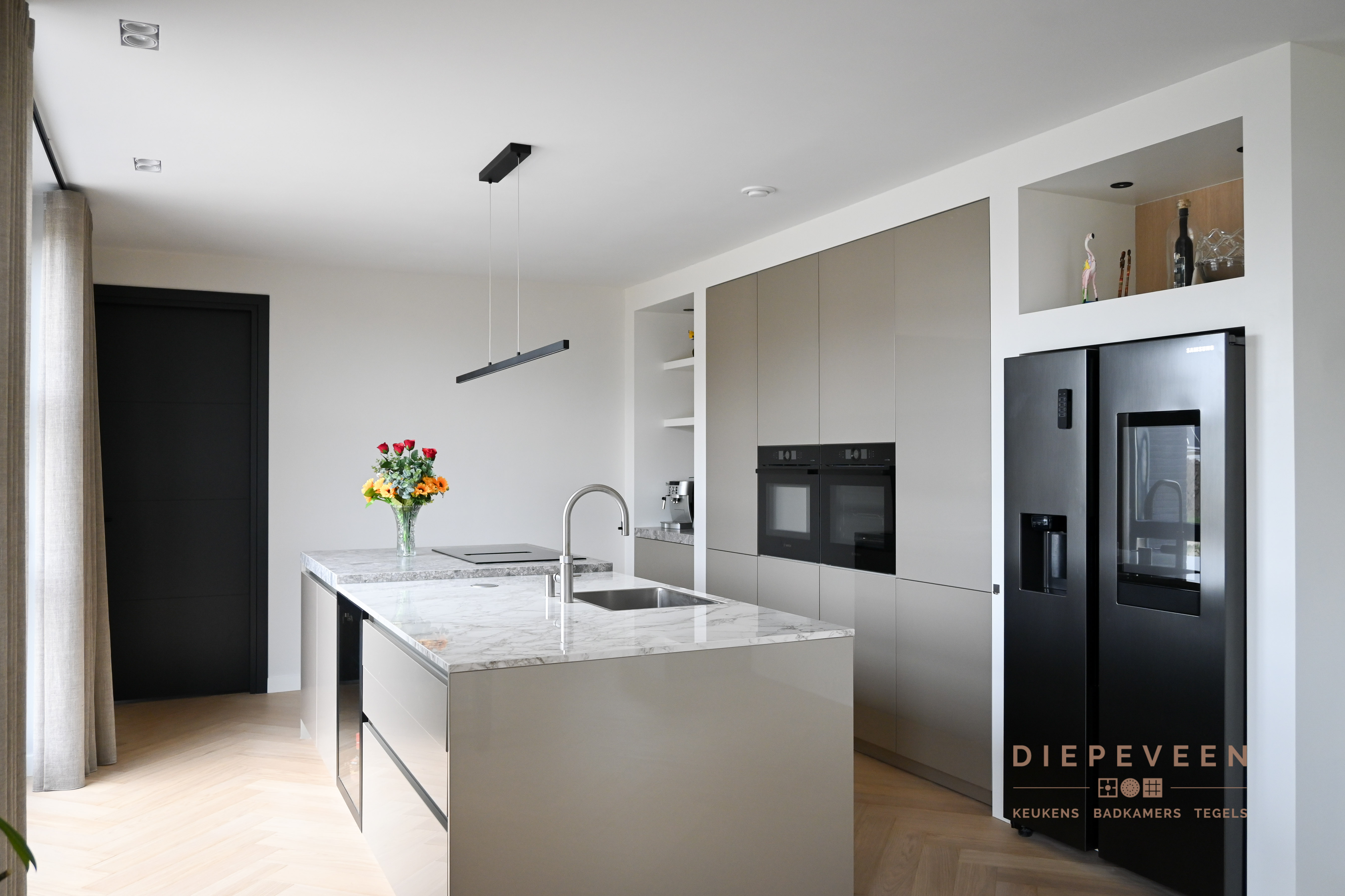 Een prachtige modern keuken. De keuken maakt de ruimte helemaal af!