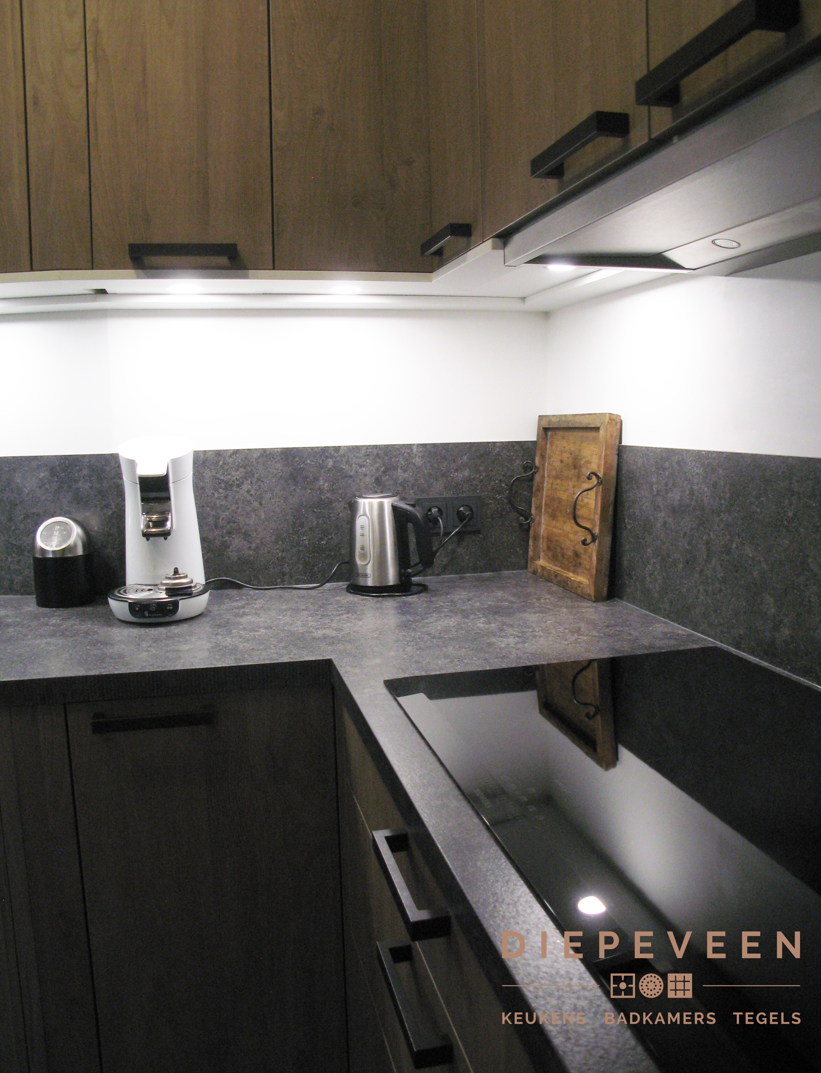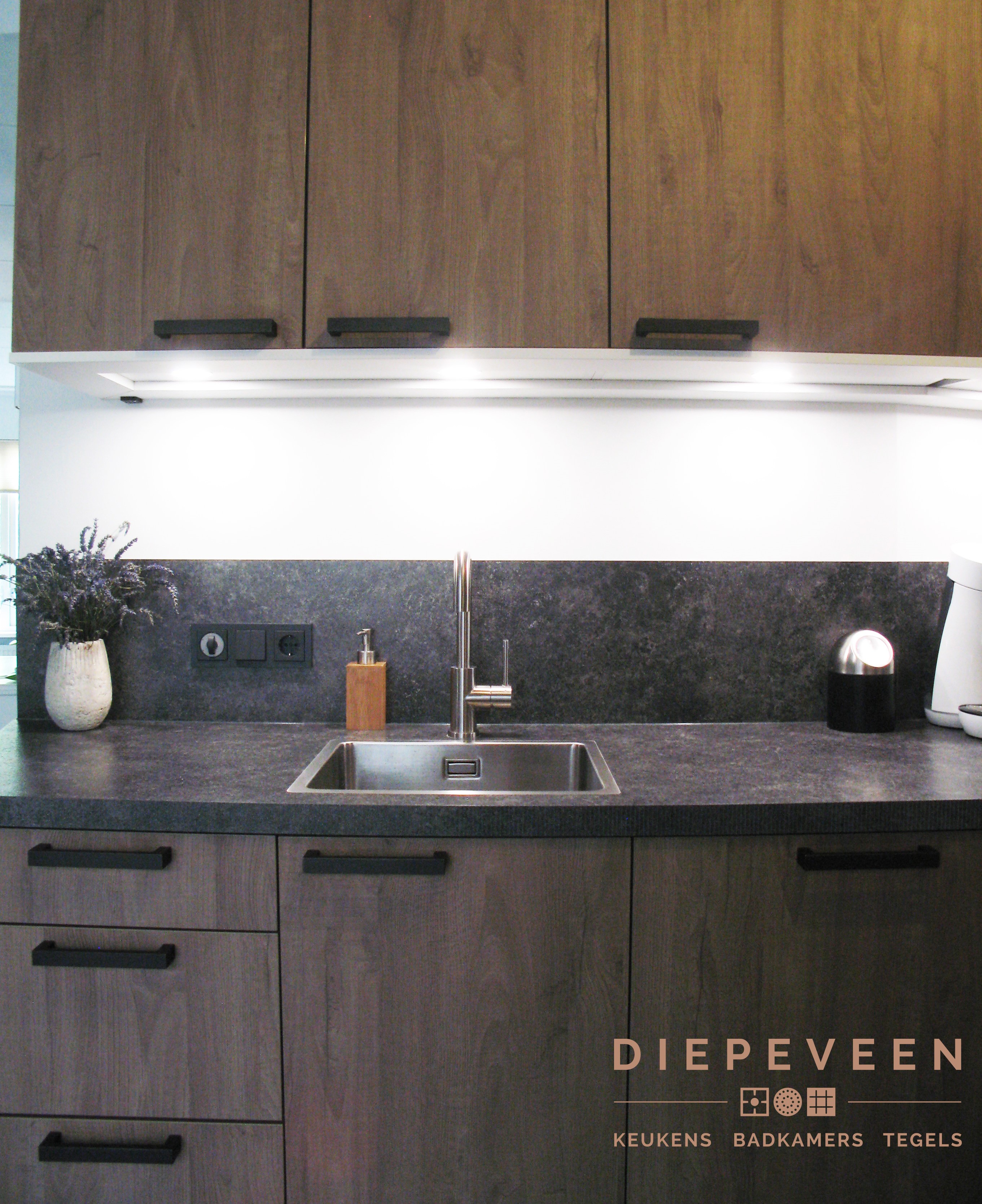 Een stoere keuken met hout gecombineerd met zwart. Gaaf!