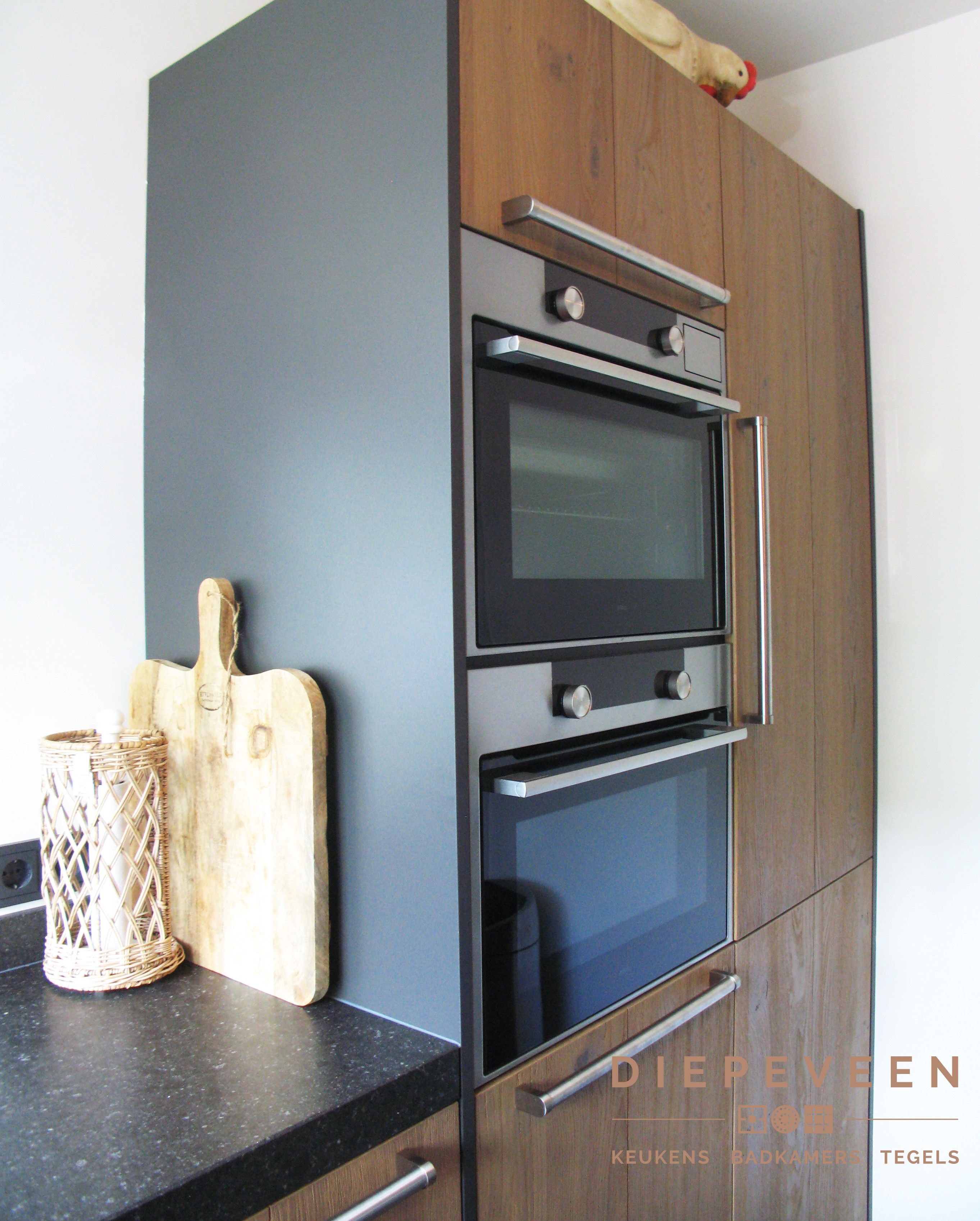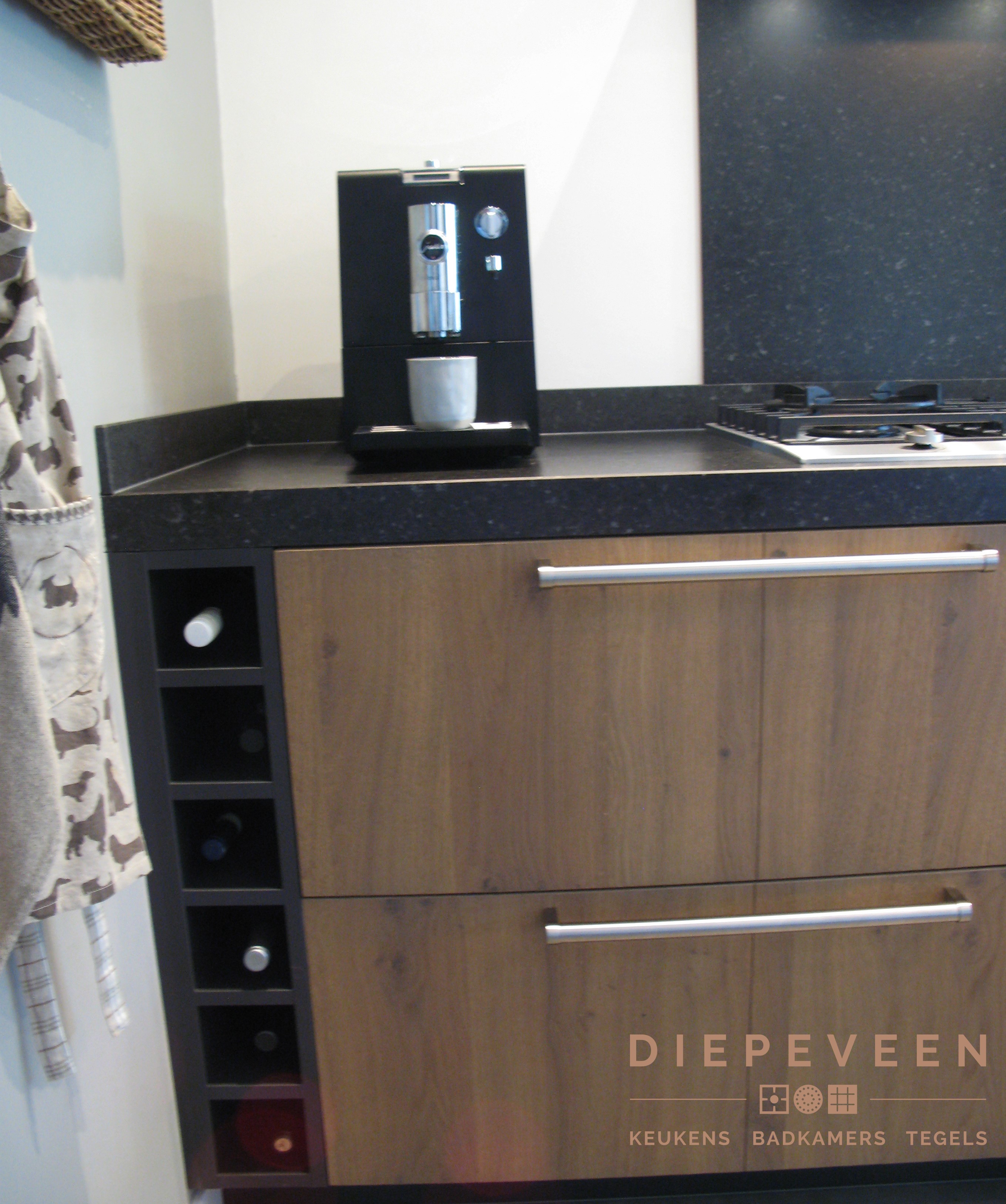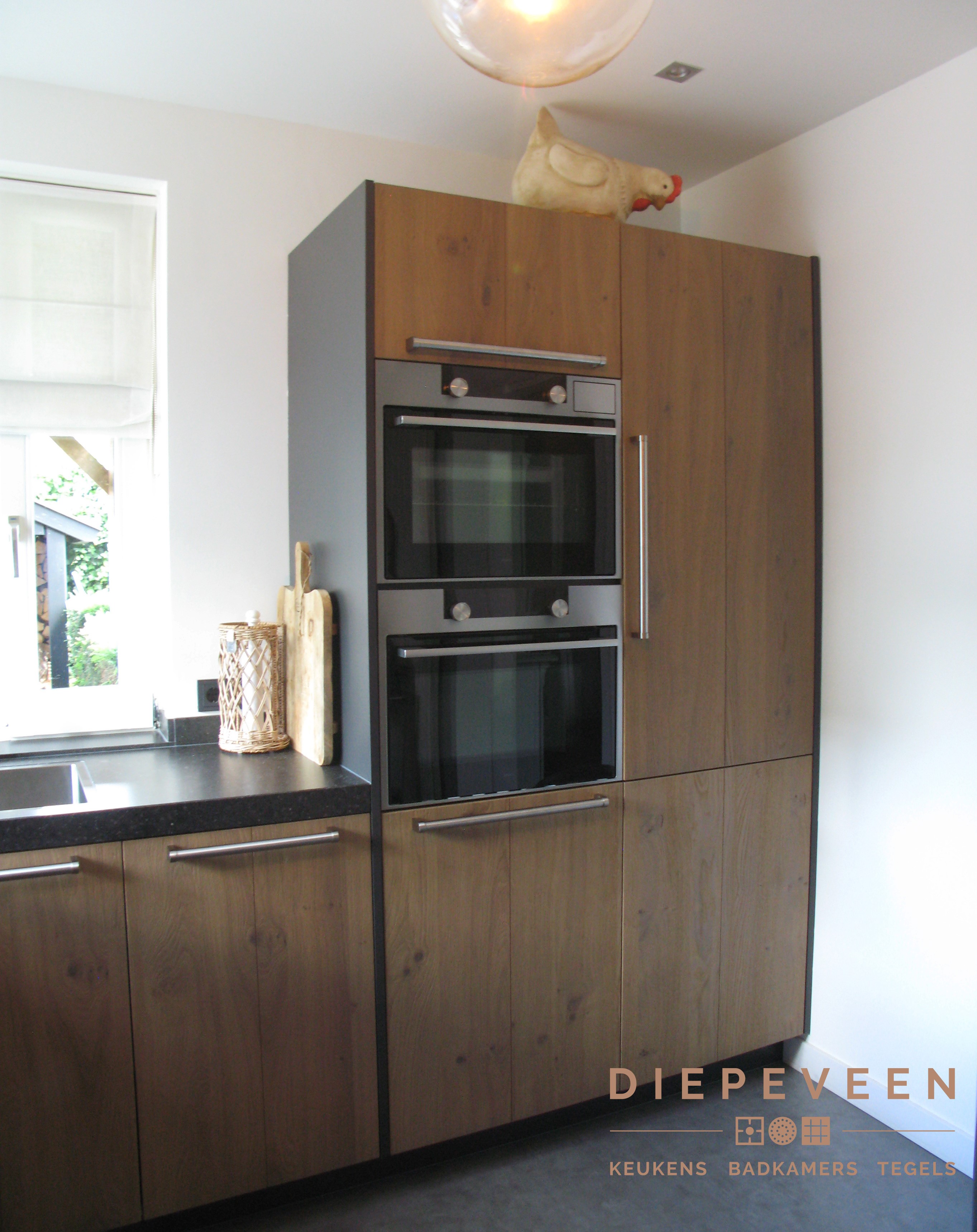 Een stoere keuken met hout gecombineerd met zwart. Gaaf!