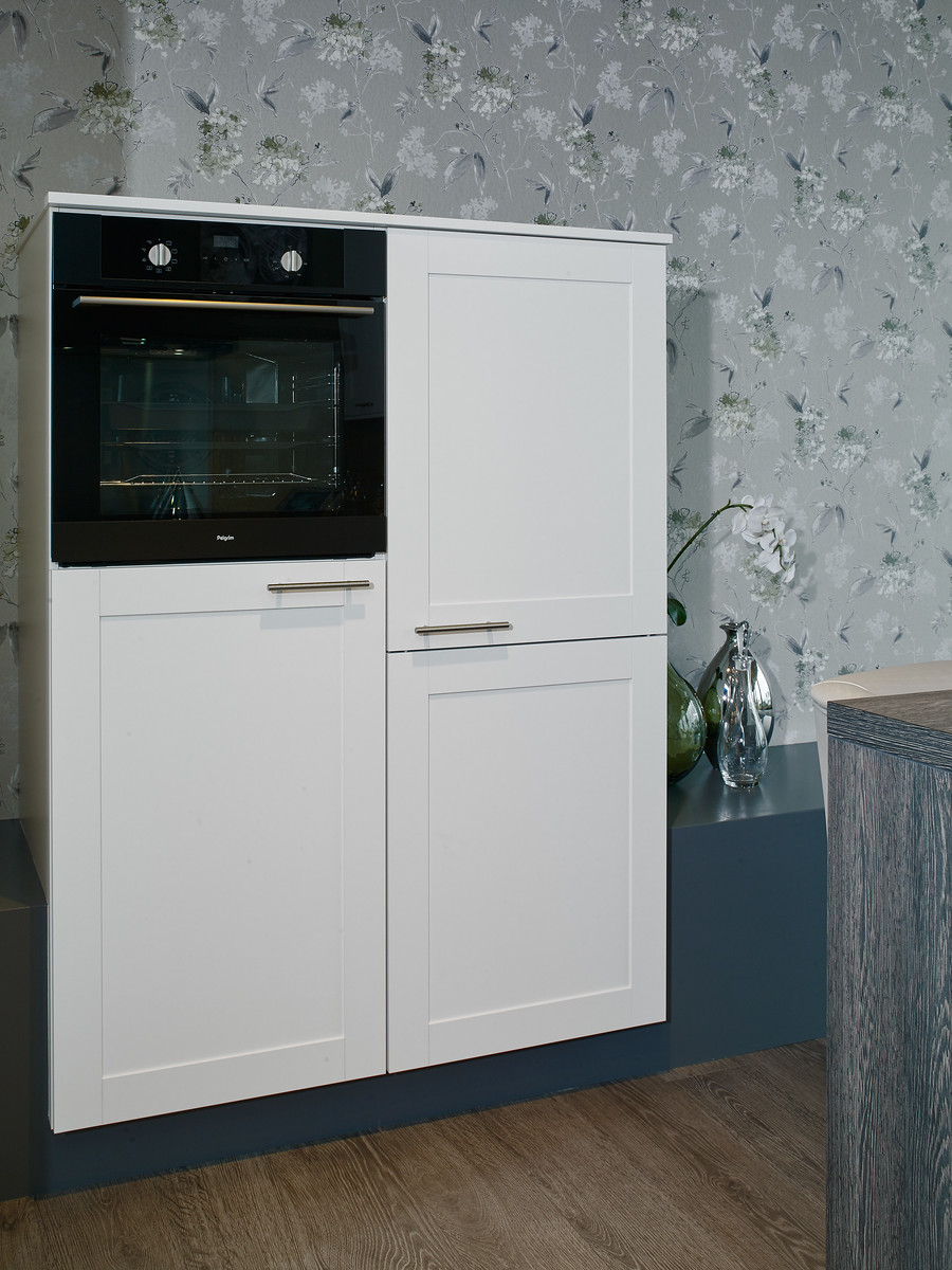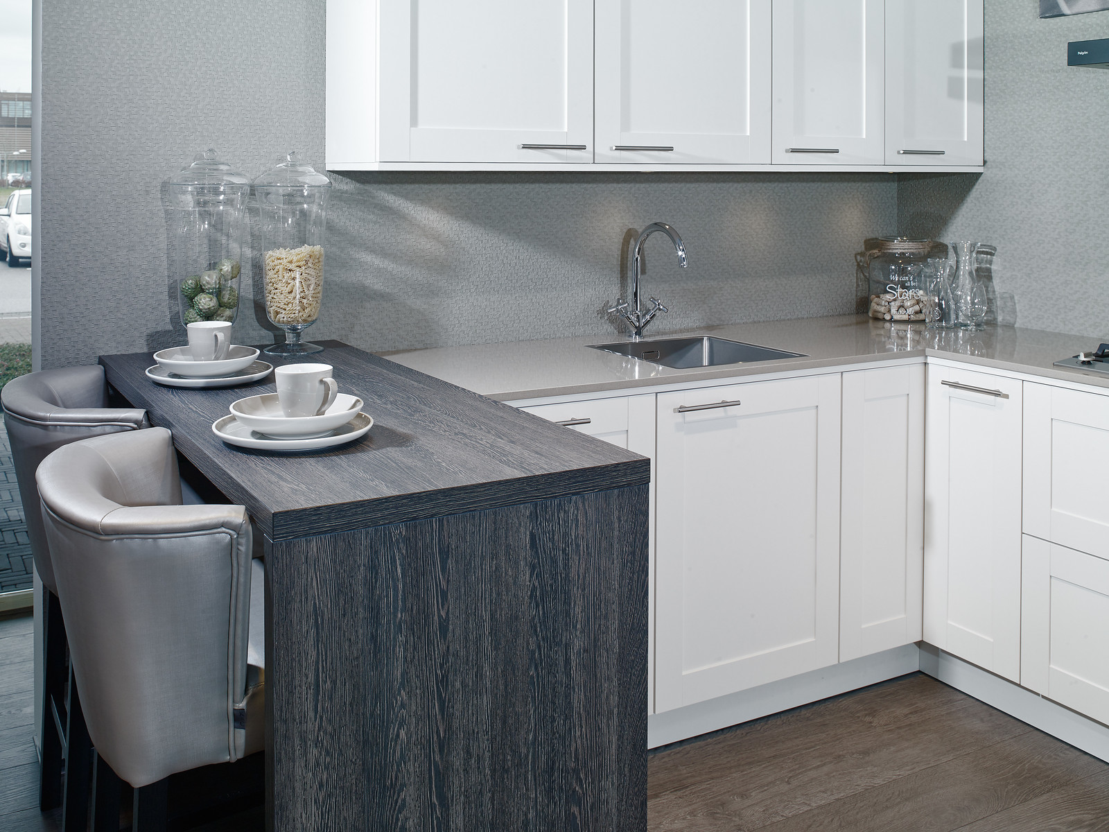 De Keller Cascade is een tijdloze keuken die in onze showroom te bezichtigen is. Een hoekkeuken met een gezellig barretje om aan te eten of gezellig aan te zitten als er gekookt wordt of om een heerlijke kop koffie aan te drinken. Aan de overzijde van de keuken is een kastenwand geplaatst voor nog meer opbergruimte en tevens zit daar ook de oven.