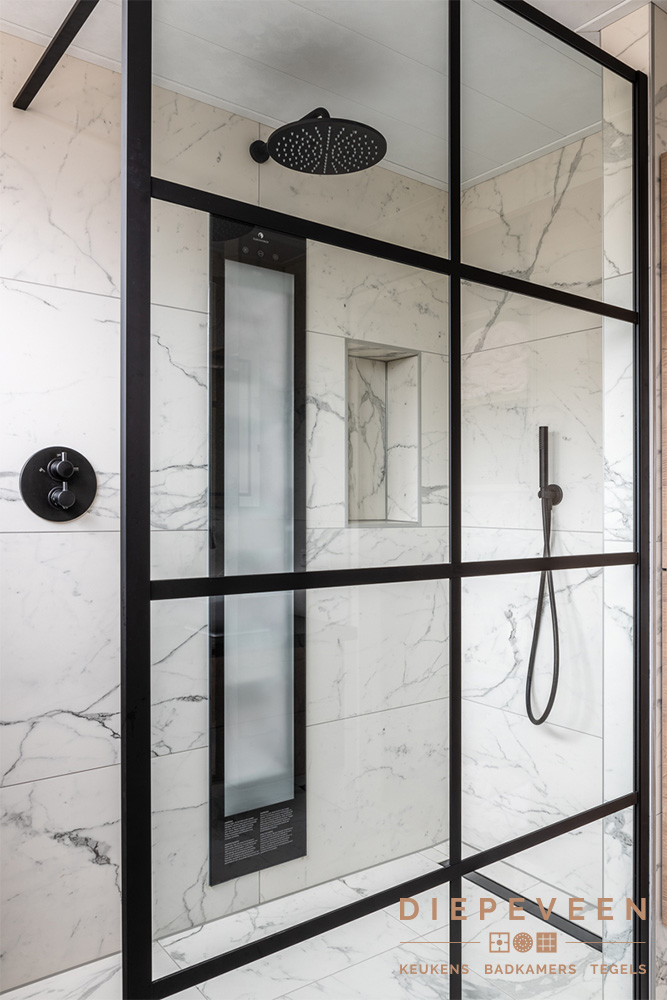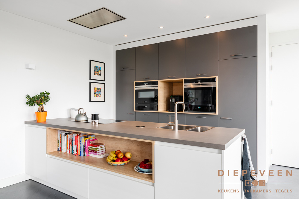 Een mooie moderne keuken. Wit hoogglans met een stoere greep.