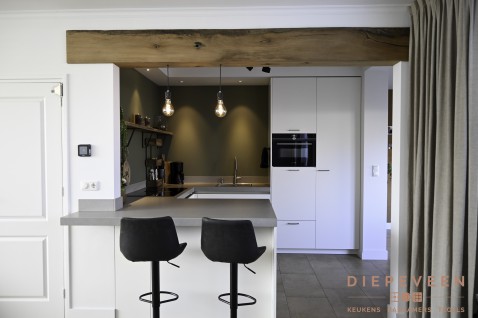 Een prachtige mat witte keuken. Stoer tijdloos en modern. Wat wil je nog meer?