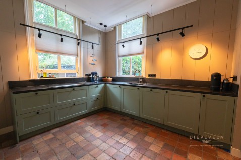 Een landelijke keuken met een graniet blad. Een prachtig resultaat