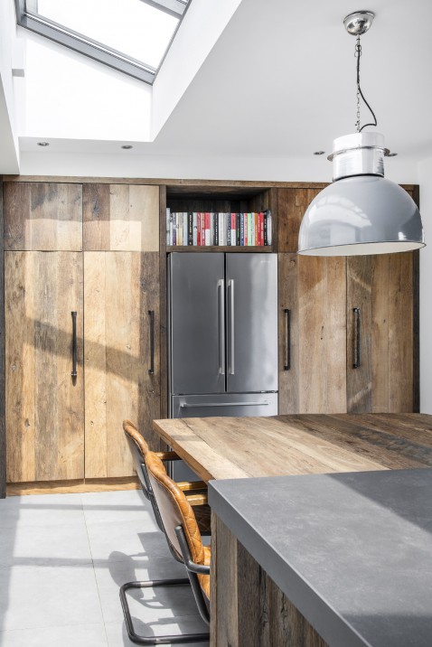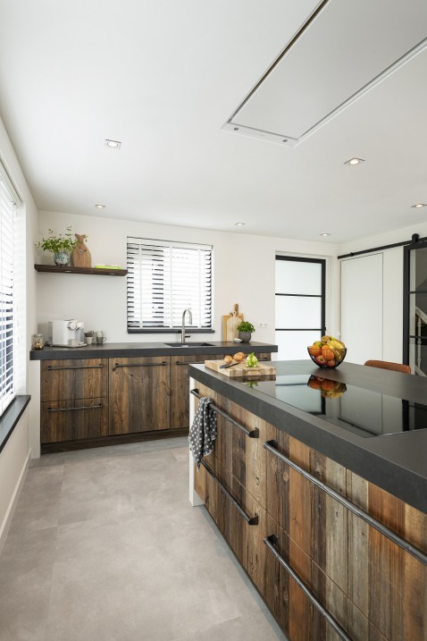 Verweerd hout, stoere details en kwaliteitsmaterialen maken van deze keuken een duurzame leefruimte