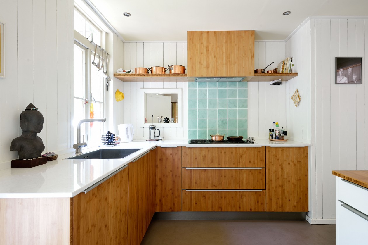 Het interieur in één lijn doortrekken door het gehele huis. De keuken, de badkamer, het toilet en de woonkamer. Het huis straal rust en eenheid uit.