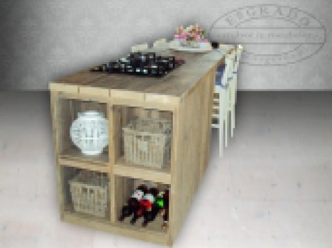 Het hout wat voor deze stoere keuken is gebruikt is honderden jaren oud en door de klant vanuit Indonesië naar Nederland gehaald.