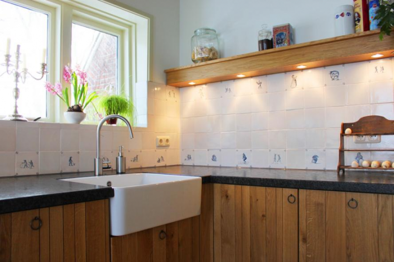 Deze keuken is door de familie zelf voorzien van echte handgemaakte witjes die door een familielid beschilderd zijn. Persoonlijker kun je het niet maken.