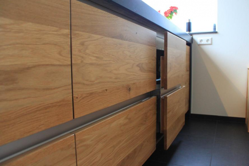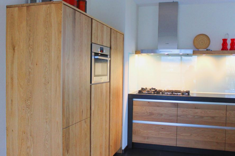 Luxe houten maatwerk keuken inclusief leveren, montage en aansluiten op vooraf aangebrachte aansluitpunten: €24.500,-