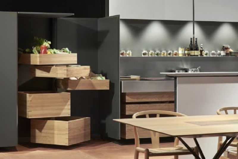 Functies die tot nu toe met de rug naar de ruimte aan het werkblad werden verricht, worden nu – bijvoorbeeld in de bulthaup functieboxen – naar het eiland verplaatst.