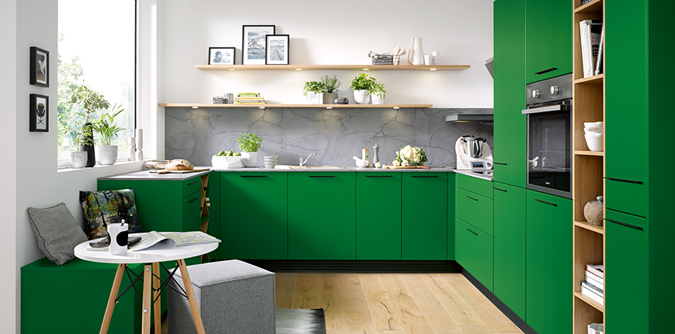 Een groene keuken toch te heftig? Natuurlijk kun je er ook voor kiezen om groene elementen in de keuken toe te voegen om ervoor te zorgen dat groen niet de boventoon voert. Denk hierbij bijvoorbeeld aan groene keukentegels, groene keukenaccessoires of een groene achterwand.