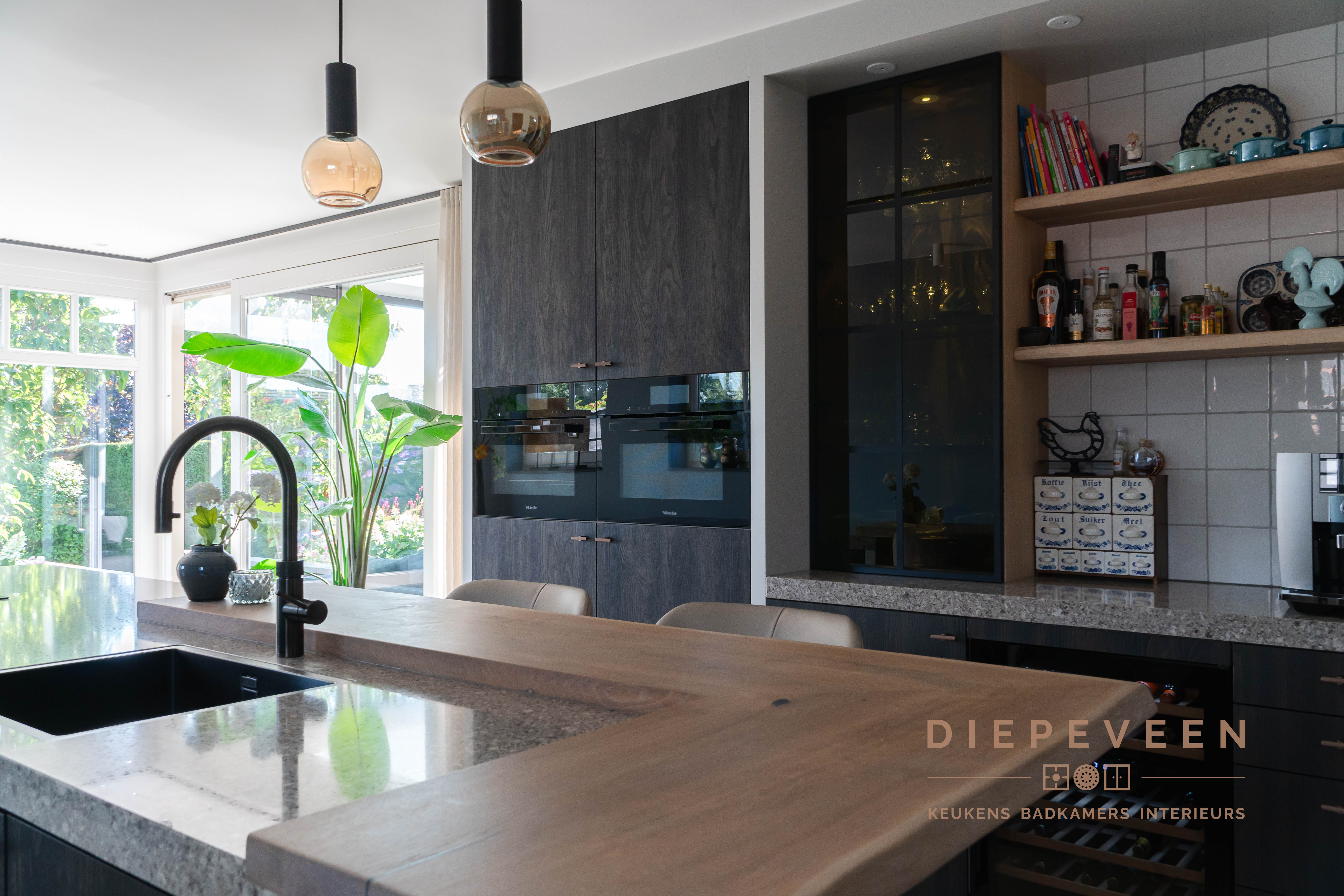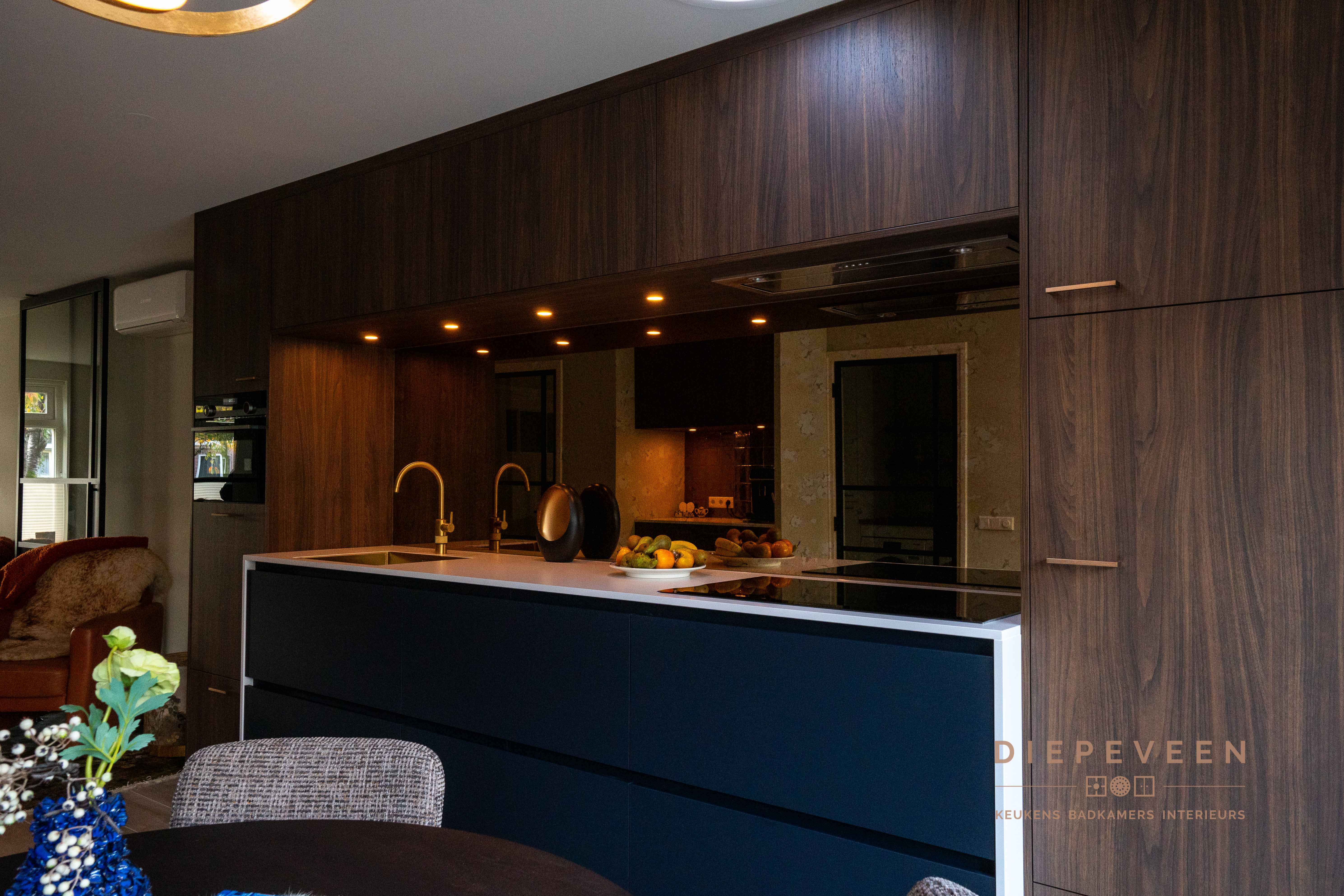 || MODERNE KEUKEN || Deze keuken heeft een eigentijds en warm ontwerp. De combinatie van midnight blue kasten met houten accenten zorgt voor een stijlvolle en uitnodigende uitstraling. De donkerblauwe kasten geven de ruimte een moderne, strakke look, terwijl de houten elementen een warme touch toevoegen.