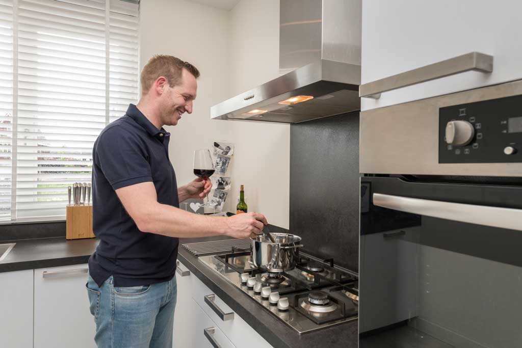 Het eindresultaat van die klik staat te pronken in het nieuwbouwhuis waar Jordi en Daniëlle in 2016 gingen wonen: een strakke, praktische, redelijk neutrale keuken. “We zijn heel tevreden. Als we ooit een andere keuken nodig hebben, gaan we weer naar Tieleman”, zegt Jordi, terwijl hij een glas rode wijn inschenkt.