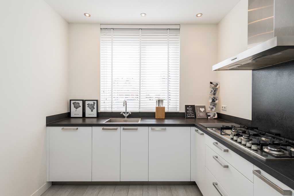 Er waren wat modelkeukens te kiezen voor de bewoners van DOCK 178, maar Jordi en Daniëlle hadden andere wensen. Bij Tieleman Keukens konden ze die realiseren. “We hadden een klik met de verkoper, maar voor ons was nog veel belangrijker dat Tieleman, naast het persoonlijke contact, bekend staat vanwege de goede service. Als er iets aan de hand is, bel je op en staan ze snel op de stoep om het op te lossen”, zegt Jordi. Hij voegt er nog een reden om voor Tieleman Keukens te kiezen aan toe: “Fijn dat er bedrijvigheid is op het eiland. Die moet je wat gunnen. Pas als je het hier niet kunt vinden, zouden we het buiten het eiland zoeken.” De wensen die ze hadden waren onder andere een vijfpits kookplaat, een vierkante wasbak met een strakke kraan, een oven op enige hoogte en een L-vormige opstelling. De keuken moest strak en rechtlijnig zijn, als rustige basis voor de wat speelsere elementen in het interieur. En een keuken die niet te uitgesproken van karakter is, zodat ook een eventuele volgende bewoner er gemakkelijk mee uit de voeten kan. Jordi en Daniëlle gingen met hun wensen naar Tieleman Keukens. “Algauw was er een 3D-tekening. Dan krijg je er wel gevoel bij. Ik zag mezelf al in die keuken staan”, zegt Jordi. “Er zat eerst nog een gaatje tussen onze wensen en ons budget, maar daar zijn we met
