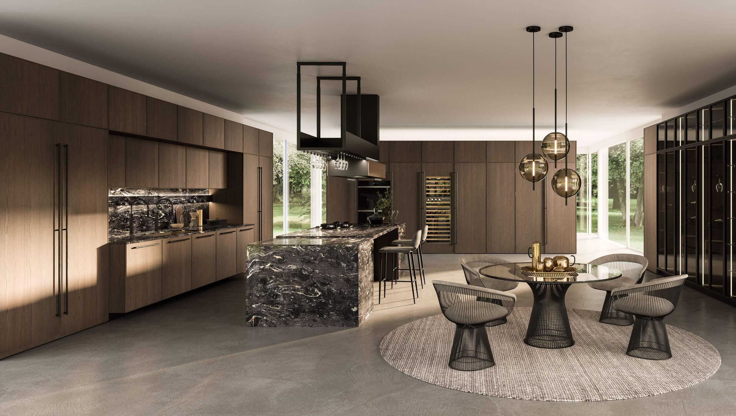 De keuken is voorzien van een Siemens iQ700 multifunctionele oven met stoomfunctie en Siemens iQ700 warmhoudlade, een Siemens koelvriescombinatie en Miele vaatwasser. De kookplaat is een Bora Pure inductiekookplaat met ingebouwde afzuiging. Door de ingebouwde afzuiging is er geen afzuigkap nodig.
