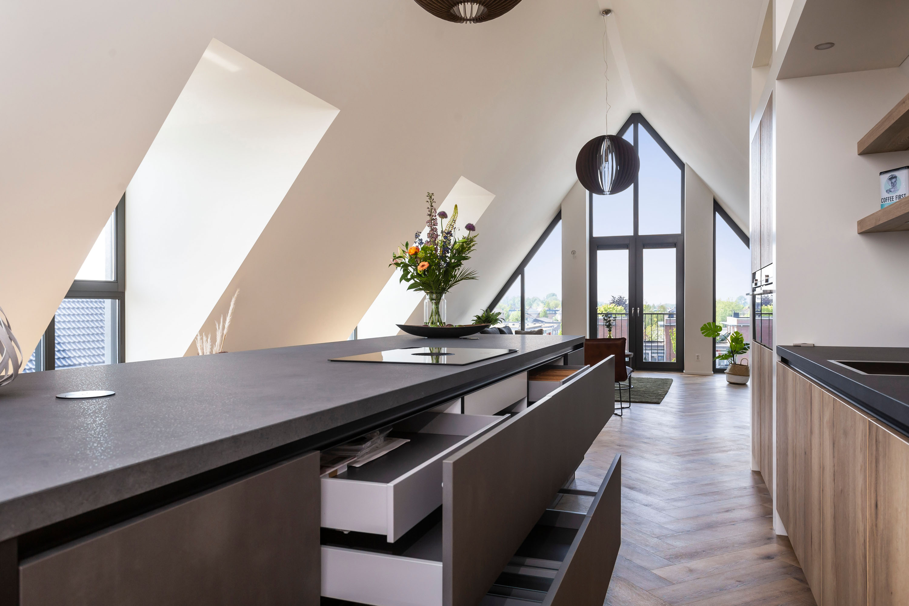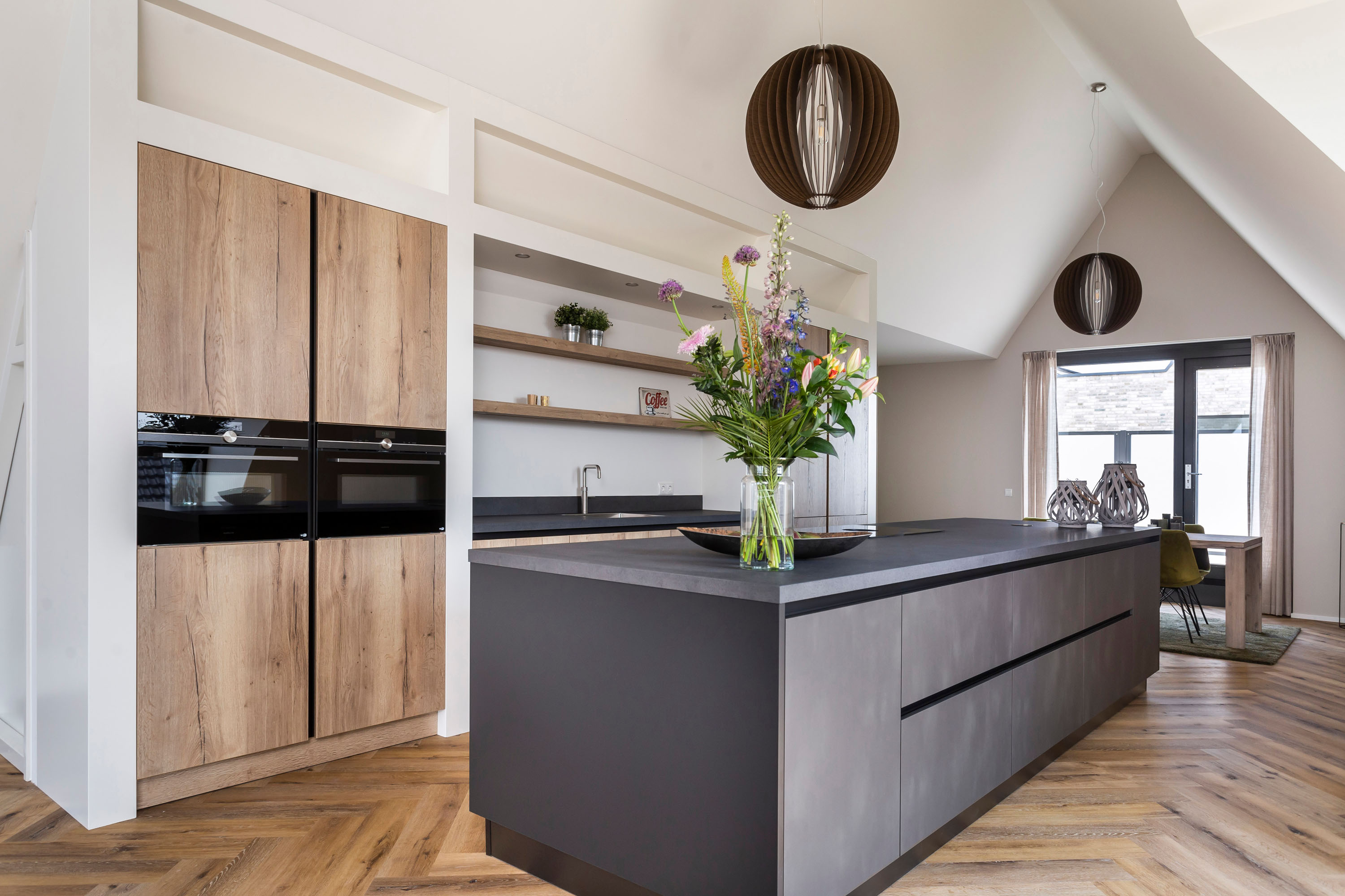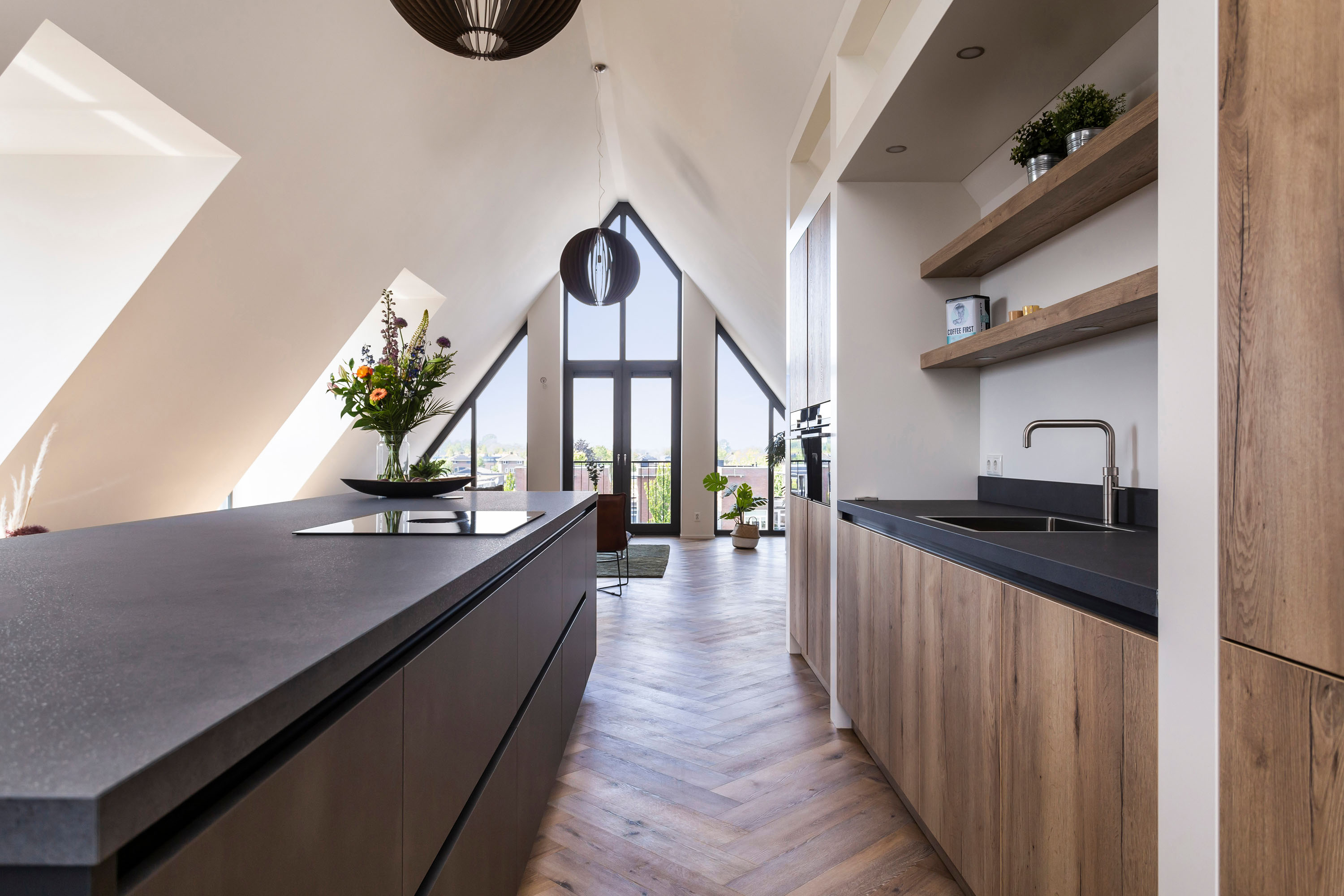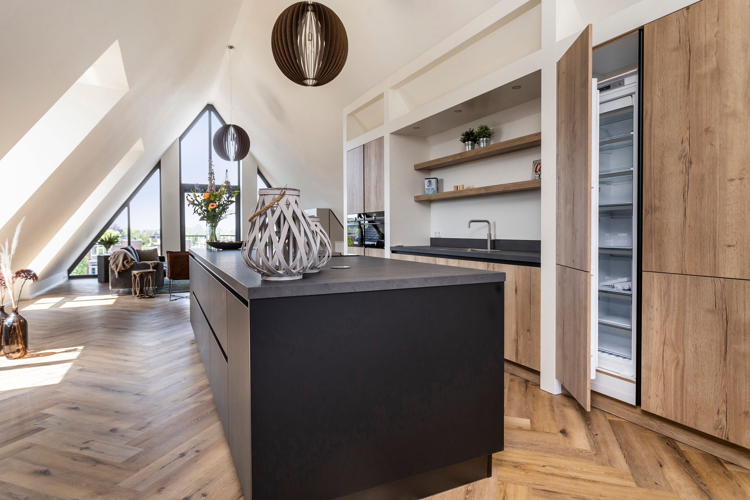 Binnenkijker Tieleman-keuken: zwarte/houten keuken in een penthouse te Middelharnis.