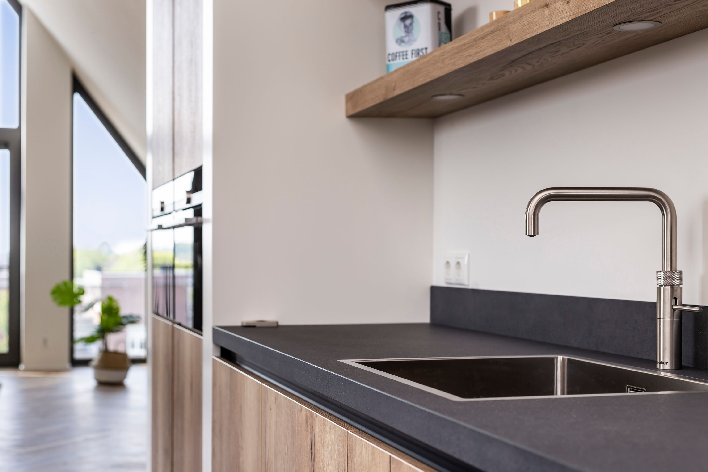 In veel keukens zien we de Quooker terug, zo ook in deze keuken. Een Quooker is een kraan die naast warm en koud ook direct kokend water geeft. In deze prachtige keuken is gekozen voor de Quooker Nordic square in de kleur RVS.