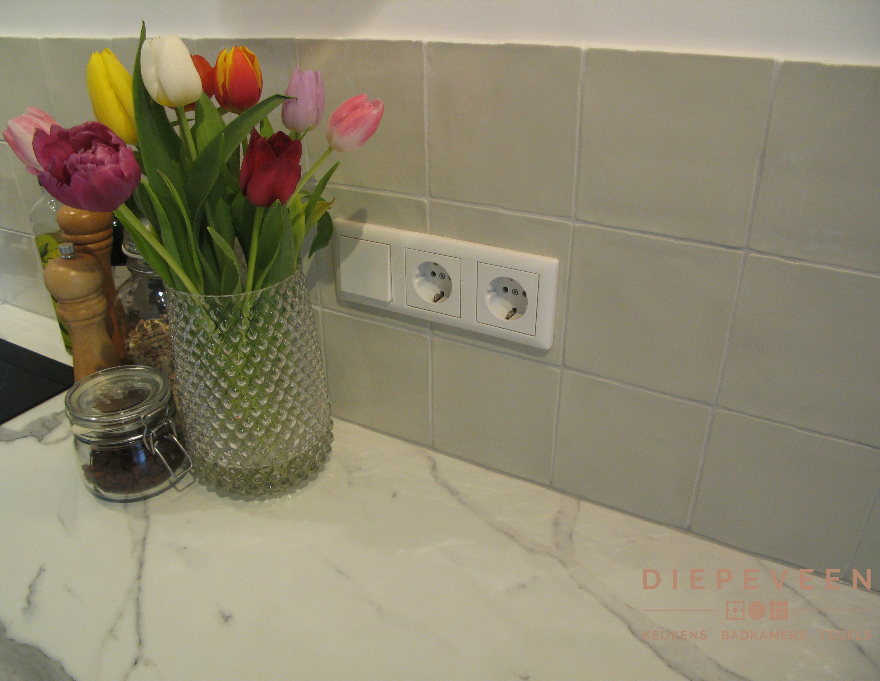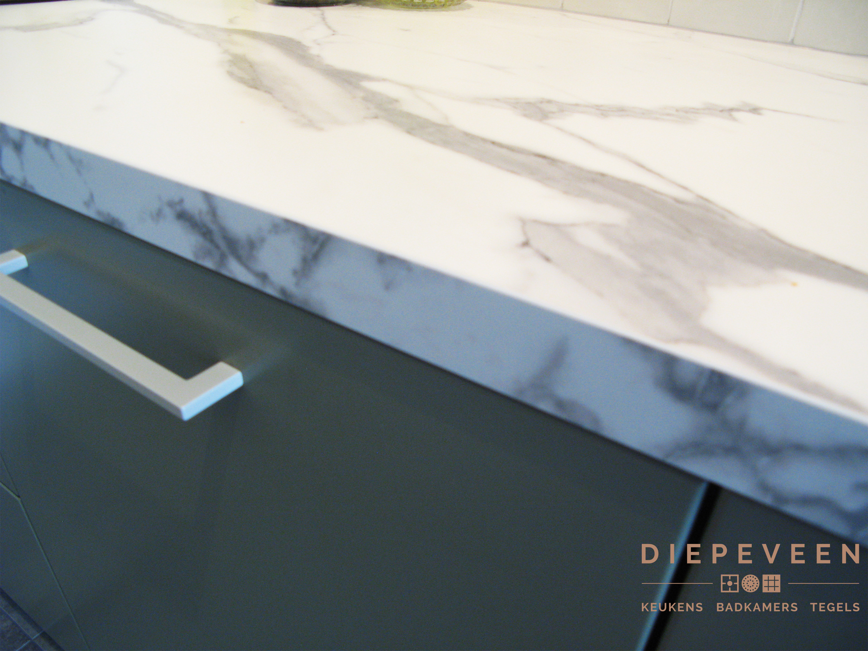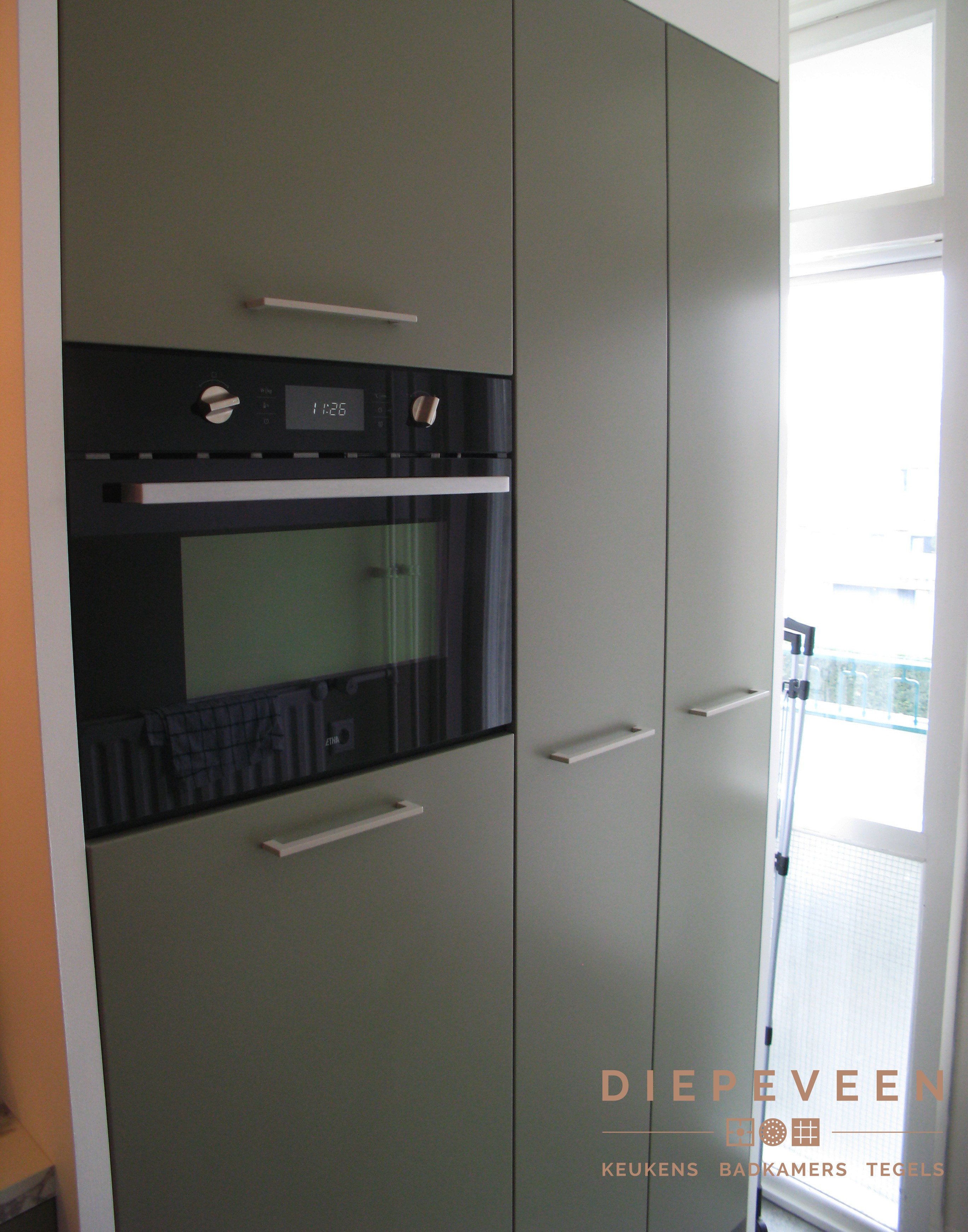Het groene frontje met het daarbij passend blad maakt deze keuken erg fris!