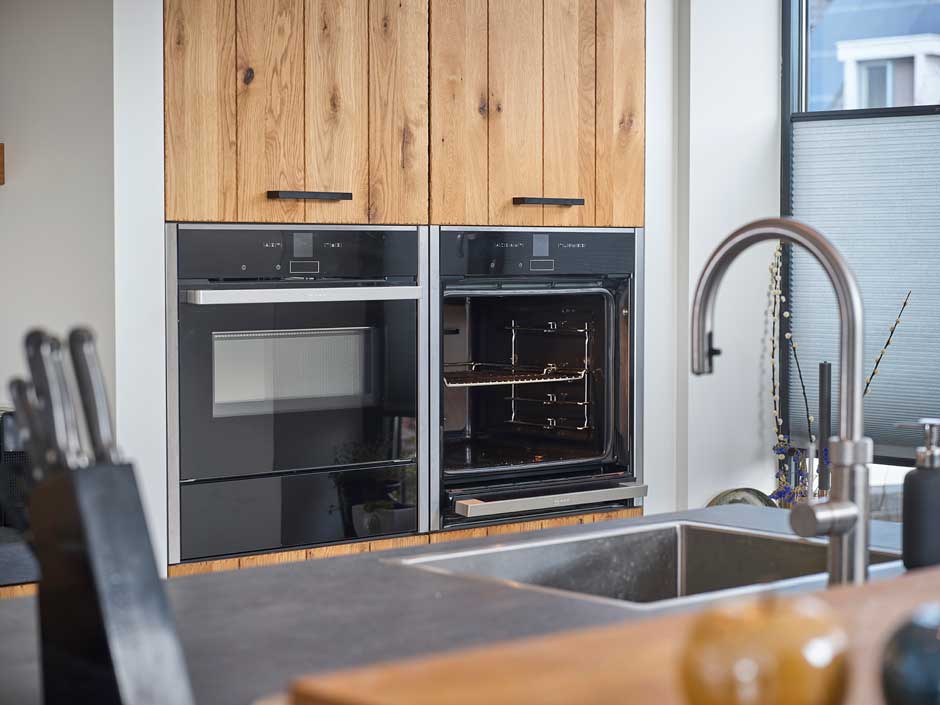 De bewoners willen graag zowel een combi-magnetron als een combi-oven. Qua hoogte komen deze apparaten verschillend uit, dat zou niet mooi zijn in deze keuken. Daarom wordt vaak een la onder een magnetron geplaatst.