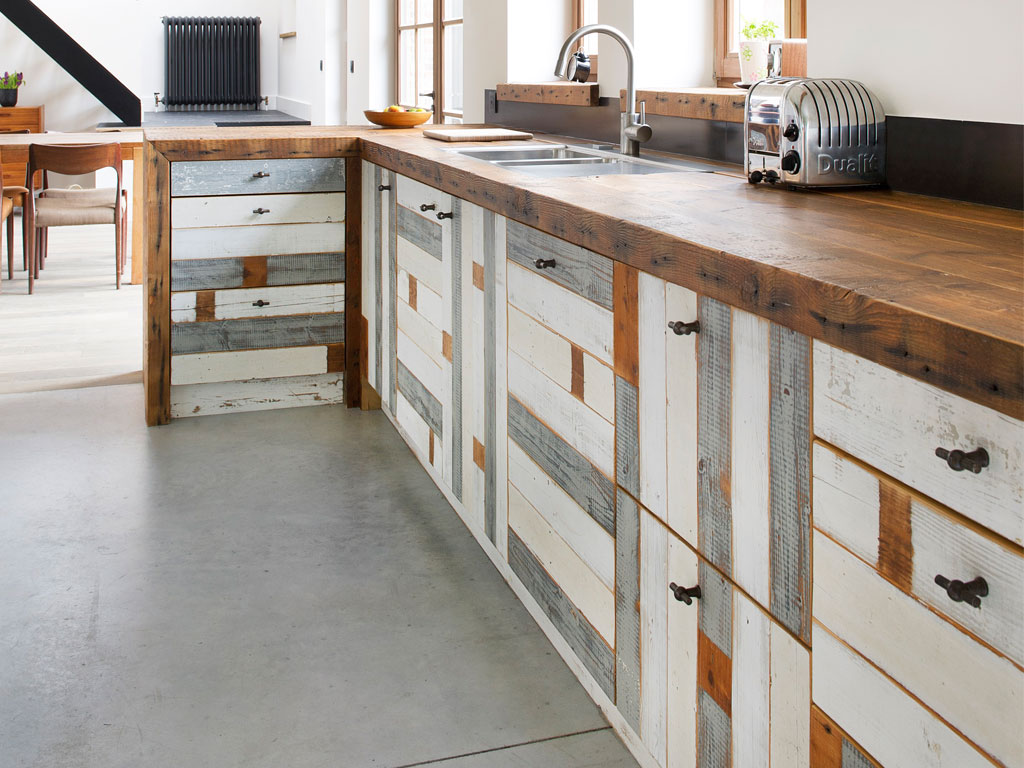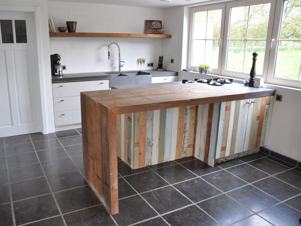Bekijk de keukens gemaakt van sloophout en oud hout. RestyleXL maakt keukens op maat van onder andere gerecyclede materialen. Een oud houten keukenblad met daaronder strakke witte afgelakte kasten, een sloophouten keuken met een dik betonnen aanrechtblad, een witte keuken van oud hout, landelijke keukens en ook moderne behoren tot de vele mogelijkheden. Zij kunnen samen met u uw maatwerk keuken realiseren. Bekijk de mogelijkheden en maak samen met RestyleXL uw keuken van gerecycled hout.