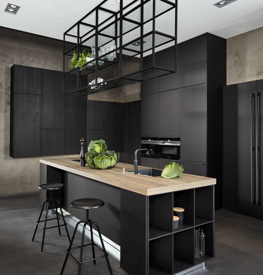 Rauw en robuust omschrijven de zwarte industriële keuken. Creëer een stoere uitstraling met groffe materialen zoals metaal, RVS en hout. Een beton(look) keukenblad maakt de keuken nog stoerder.
