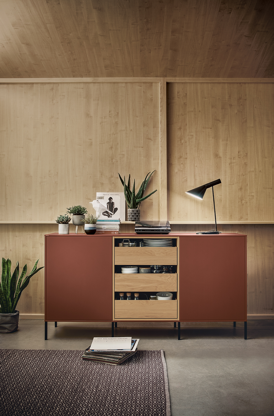 Hoe kan men een stijlvolle brug slaan tussen keuken, eetgedeelte en woonkamer? Het antwoord: met de multifunctionele next125 sideboards. Door hun heldere design lijken zij als het ware te zweven en legt de onderconstructie tevens het accent op de kubistische architectuur. Strak, puur, esthetisch, maar ook uitgerust met veel prachtige details. Zoals de als plateau verlaagde afzettray, het inschuifelement of de open onderkast met uittrekelementen. Natuurlijk zijn onze sideboards ook verkrijgbaar met compleet gesloten front – in 3 hoogtes en 4 breedtes. Voor de oppervlakken kan gekozen worden uit satijnlak, fluweelmatte lak, Fenix-laminaat en fineer.