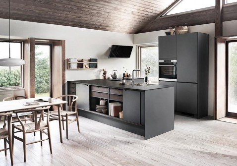 Kviks nieuwe Ombra keuken en badkamer zien er niet alleen van buiten stijlvol, strak en groen uit. Ook de productiewijze is fraai en groener dan ooit. Samen met industrieel ontwerpduo SAYS WHO ontwikkelde Kvik het design geïnspireerd op Deense natuur. Tegelijk met Ombra brengt Kvik het eerste 20 mm dikke werkblad van massief eikenhout op de markt. Ook introduceert het merk een moderne versie van de klassieke vitrinekast en een recyclingsysteem om keukens nog duurzamer te maken. Ombra is verkrijgbaar in warm groen en stralend wit. Vanaf 1 september te koop in alle Kvik winkels.