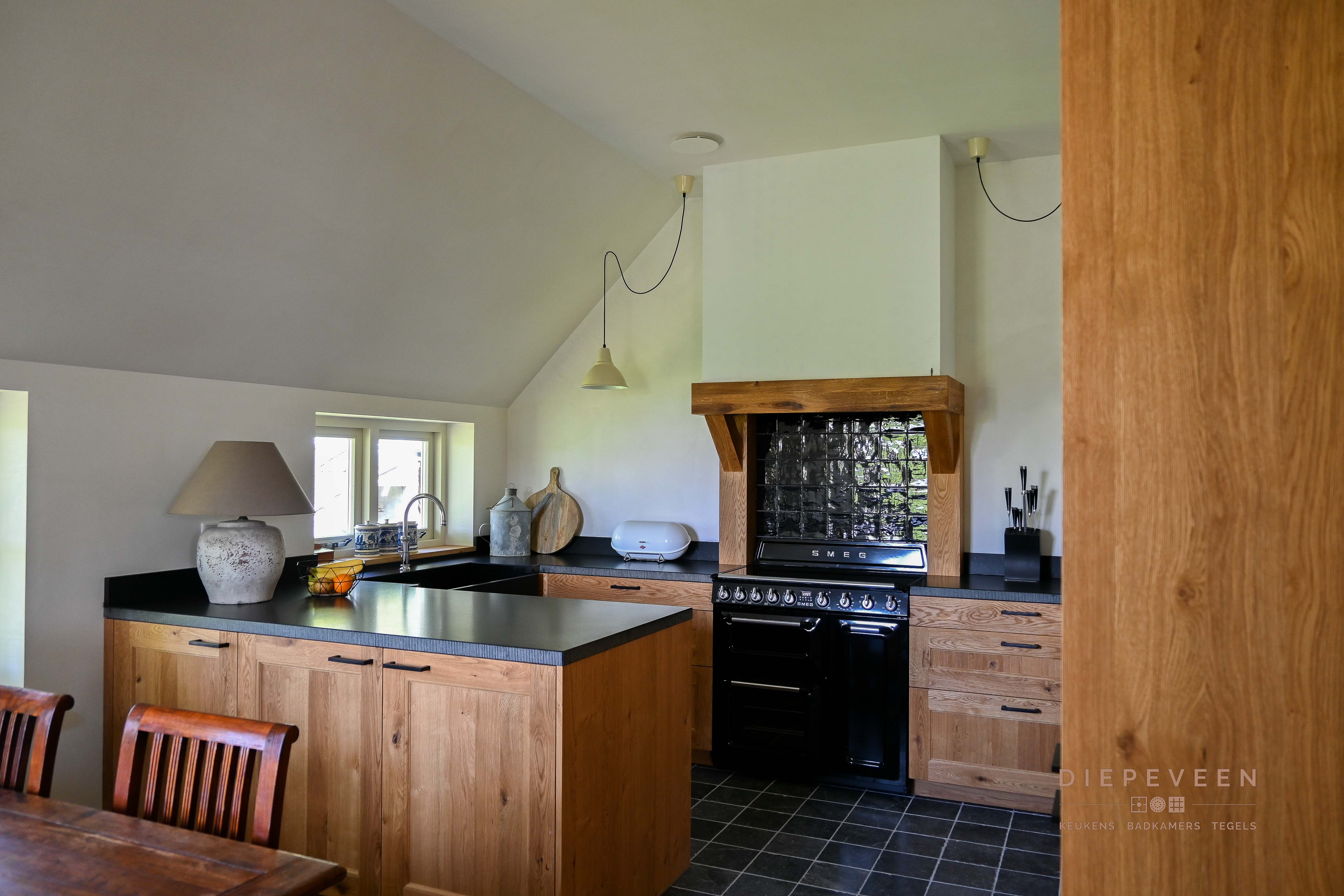Een landelijke hoekkeuken met hout. Lees verder voor meer informatie.