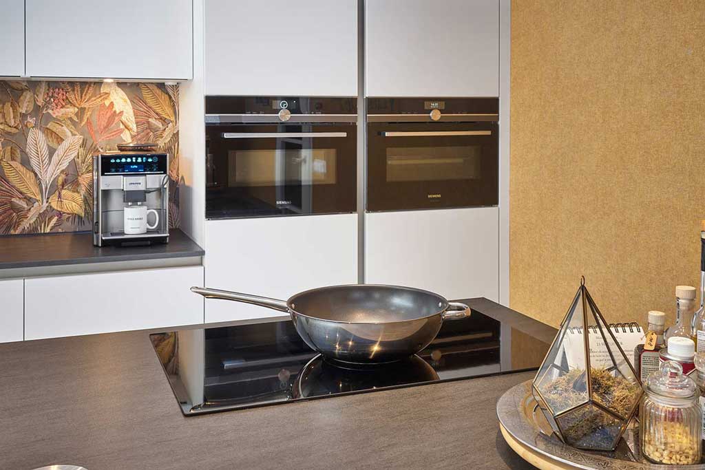 De inductiekookplaat is ook de moeite waard. Deze heeft een grote kookzone naast de overige kookzones. Waar je de pan zet, daar wordt hij verhit.