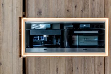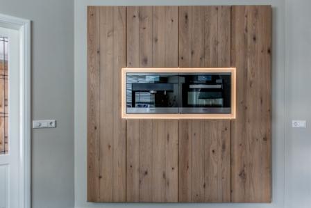 Geweldige stoere keuken met massief eiken fronten met open noesten. Wilt u liever minder of geen noesten? Bij Mereno kunt u zelf uw hout uitzoeken!