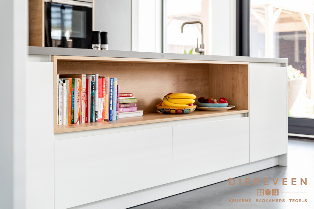 Een prachtige wit hoogglans keuken met een kader in de fronten!