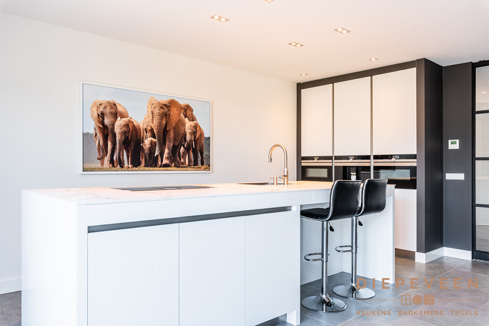 Wat een prachtige moderne keuken! Deze keuken straalt absolute rust uit. Het mooie schilderij maakt het plaatje helemaal af.